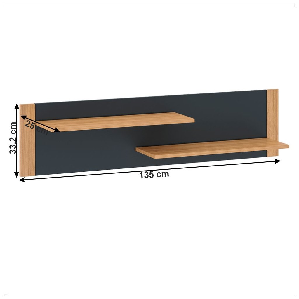 Polica FIDEL v kombinácii dub craft zlatý a grafitová sivá ponúka moderný dizajn a praktické využitie. Rozmery 135x25x33,2 cm a hrúbka 16 mm. Dodávané v demonte.
