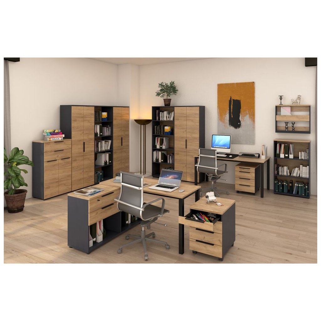 - Elegantný dizajn: Kombinácia grafitu a dubu artisan sa hodí do každého interiéru.