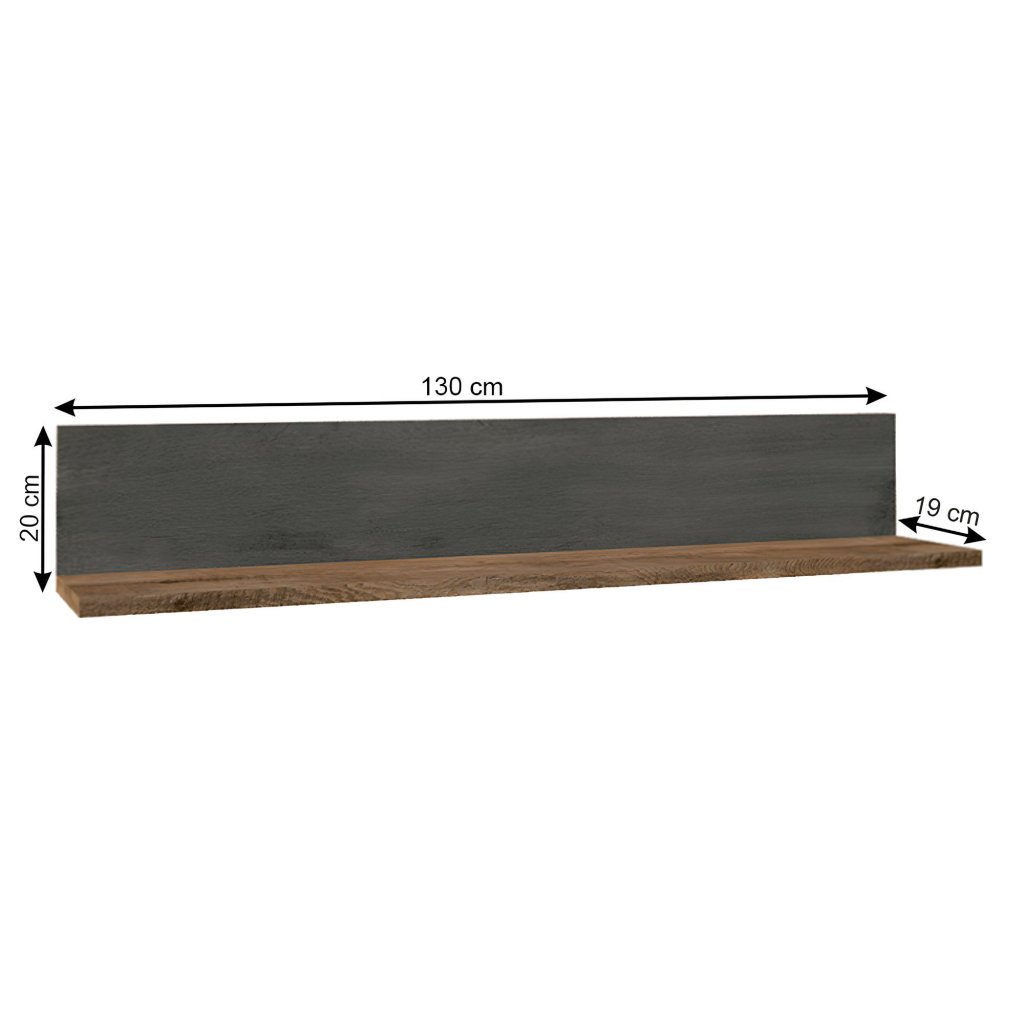 Polica MONTANA v kombinácii dub lefkas a smooth sivá ponúka moderný dizajn a praktické využitie. Rozmery 130x19x20 cm, hrúbka 15 mm. Dodávané v demonte.