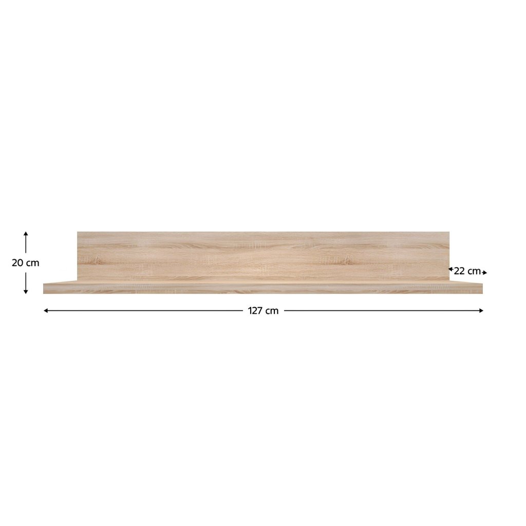 Polica NORTY 130 v dekore dub sonoma je praktickým riešením pre vaše interiéry. Rozmery 127x22x20 cm a hrúbka materiálu 32 mm zaručujú stabilitu. Dodávaná v demonte.