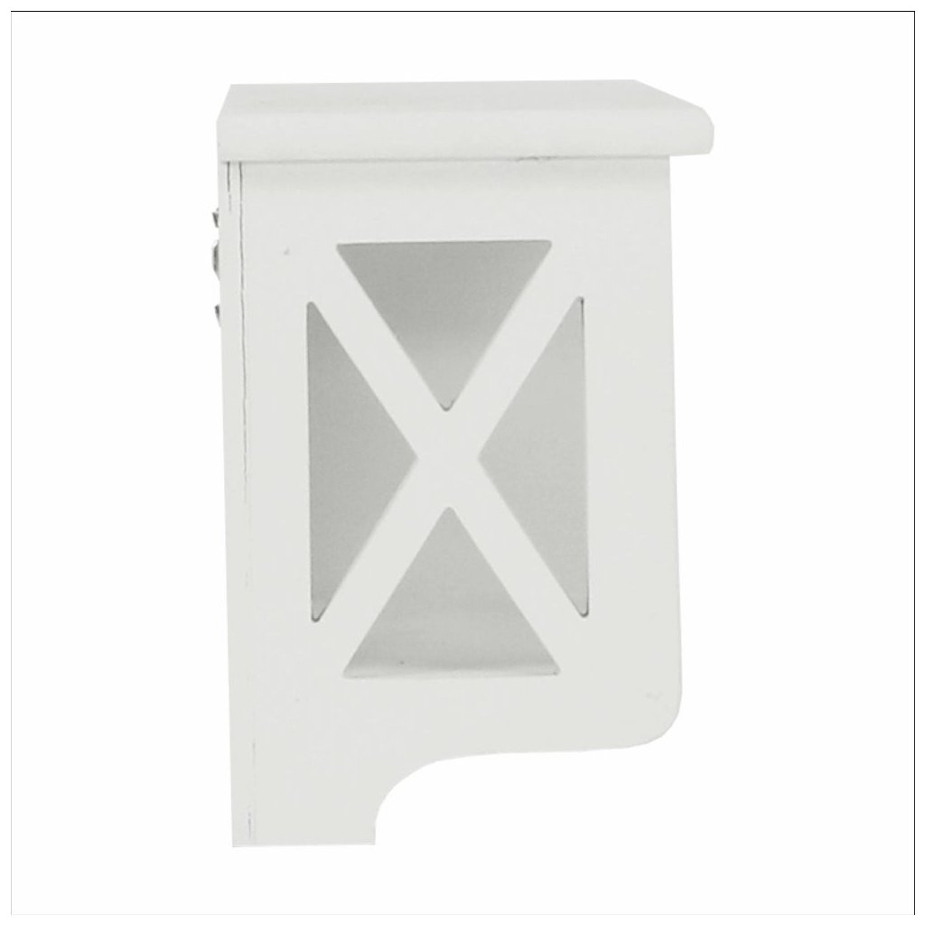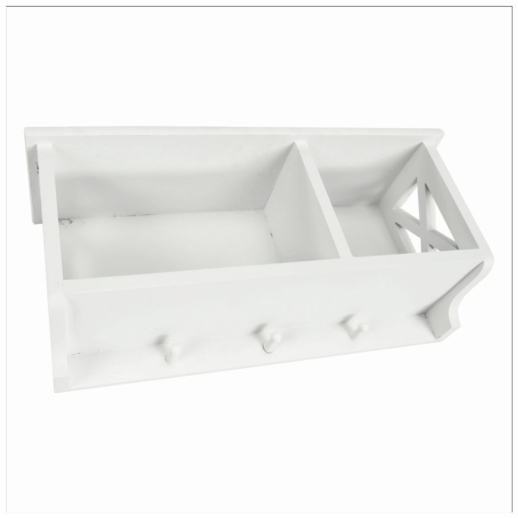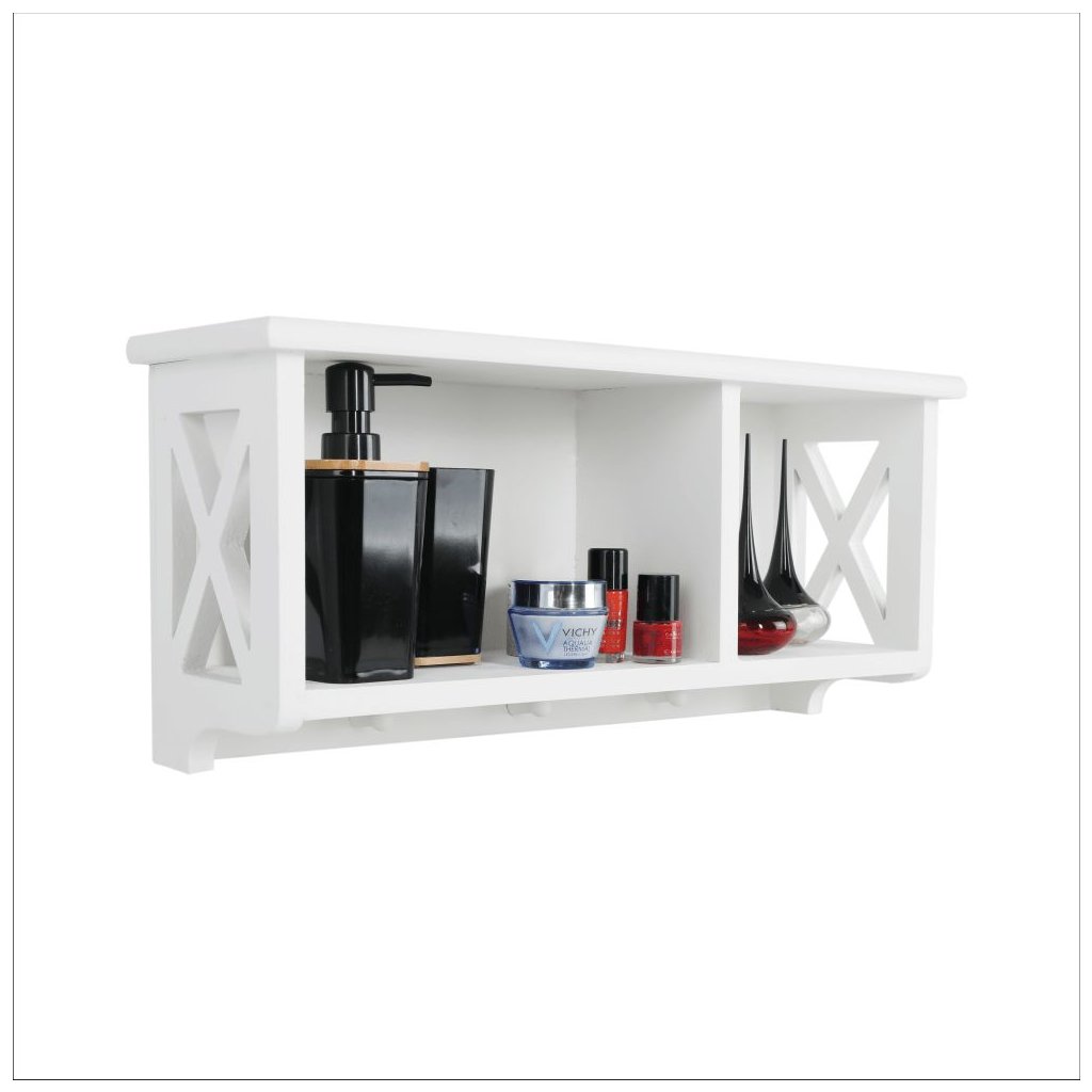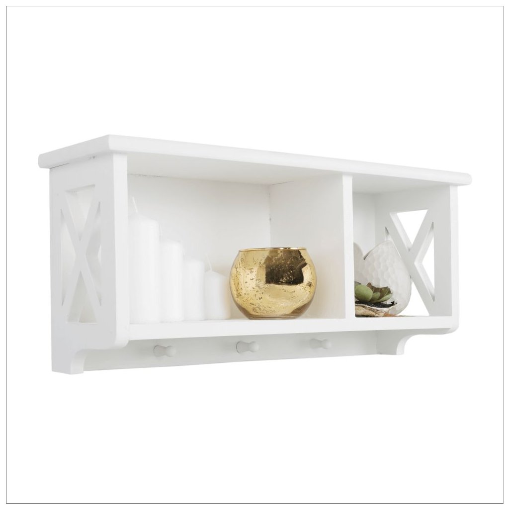Závesná polica RAFAELLO v bielej farbe kombinuje drevo a prútie. Rozmery 55x17x25 cm. Ideálna na usporiadanie a dekoráciu interiéru. Dodávaná v monte.