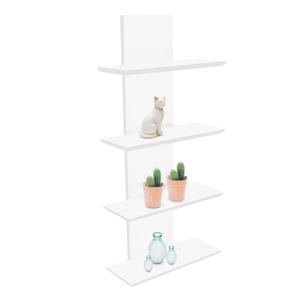 Polica ROBUS v bielej farbe je moderný nástenný kus s otvoreným úložným priestorom. Rozmery 40x16,5x92 cm a nosnosť 5 kg. Dodávaná v demonte, odporúčame pripevniť k stene.