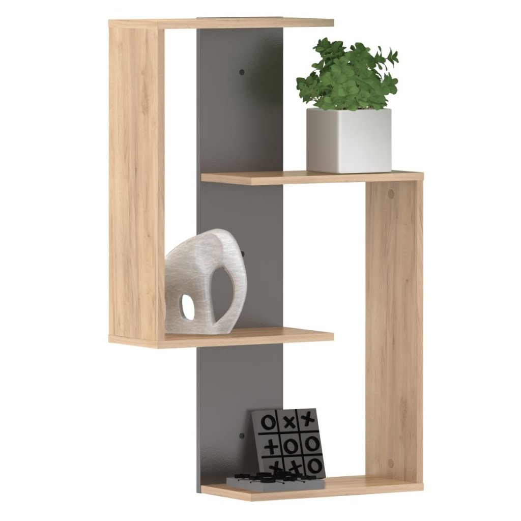 Polica VALPA v odtieni dub artisan/grafit ponúka moderný otvorený úložný priestor. Vyrobená z laminovanej DTD, nosnosť 5 kg. Ideálna na zavesenie, dodávaná v demonte. Rozmery: 65x22x100 cm.