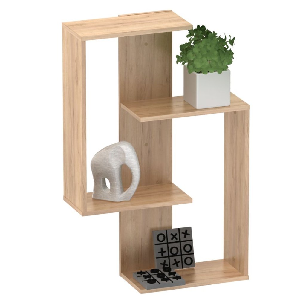 Polica VALPA v elegantnom dubovom prevedení dodáva každému interiéru moderný a štýlový vzhľad. Je ideálnym riešením pre tých, ktorí hľadajú praktické a estetické úložné možnosti. Jej otvorený dizajn umožňuje jednoduché usporiadanie a vystavenie vašich obľúbených predmetov, kníh alebo dekorácií.