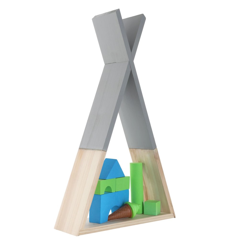 Polička JOLI v sivom a prírodnom prevedení je ideálna do detských izieb, škôlok a klubovní. Vyrobená z masívneho dreva, nosnosť 3 kg, rozmery 33x10x56 cm. Dodávaná v demonte.