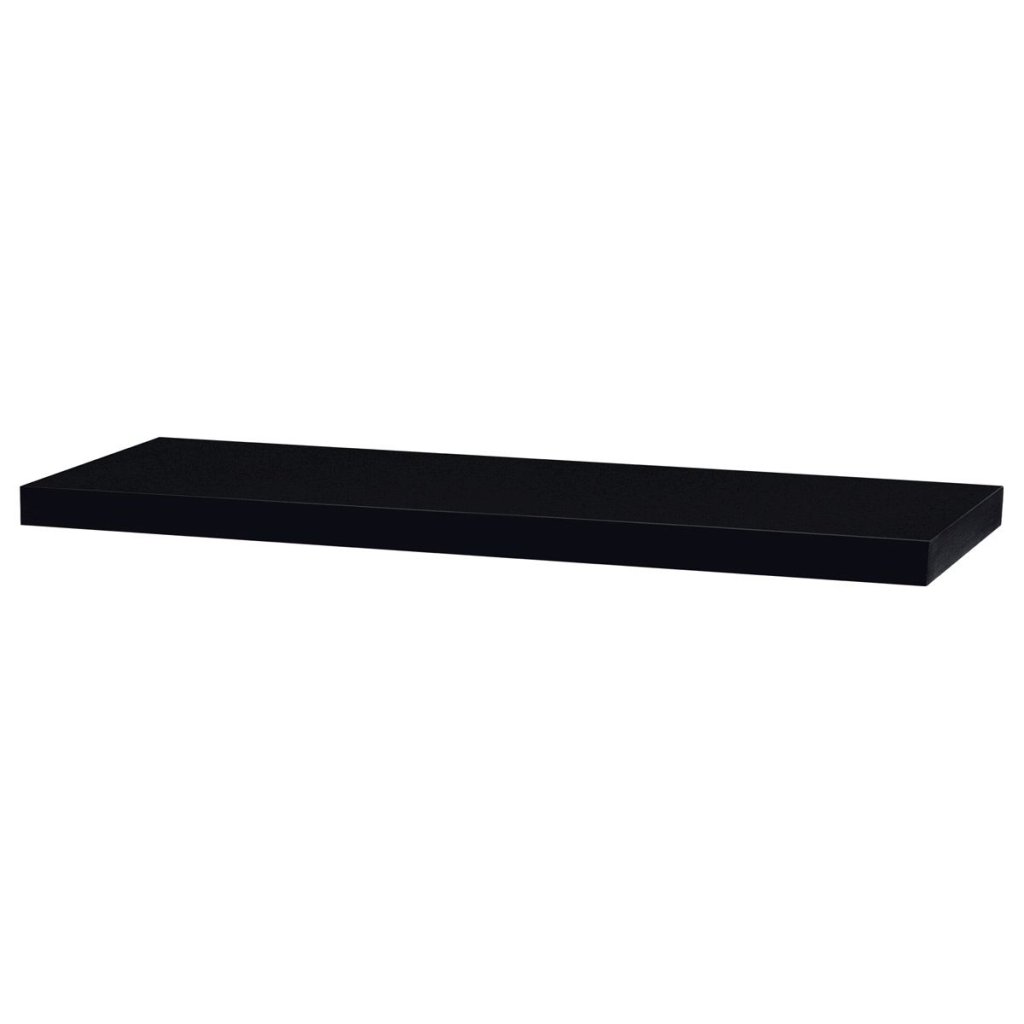 Nástenná polička s dĺžkou 90 cm z MDF v čiernom vysokom lesku. Minimalistický dizajn, ideálna na vystavenie dekorácií a kníh. Umožňuje efektívne využitie priestoru.