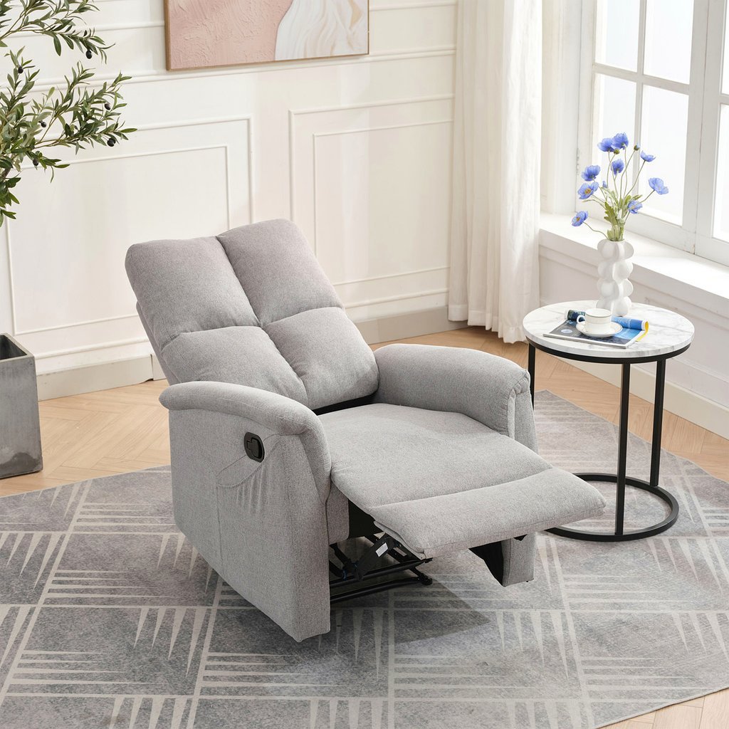 Polohovacie kreslo EOIN je navrhnuté s dôrazom na ergonómiu a praktickosť. Vybavené manuálnym ovládaním, umožňuje jednoduché nastavenie sklonu opierky a zdvihnutie podnožky. Navyše, s pridaným vreckom na bočnej strane si môžete pohodlne uložiť svoje drobnosti ako diaľkový ovládač alebo časopisy, čím zabezpečíte, že budete mať všetko potrebné na dosah ruky.