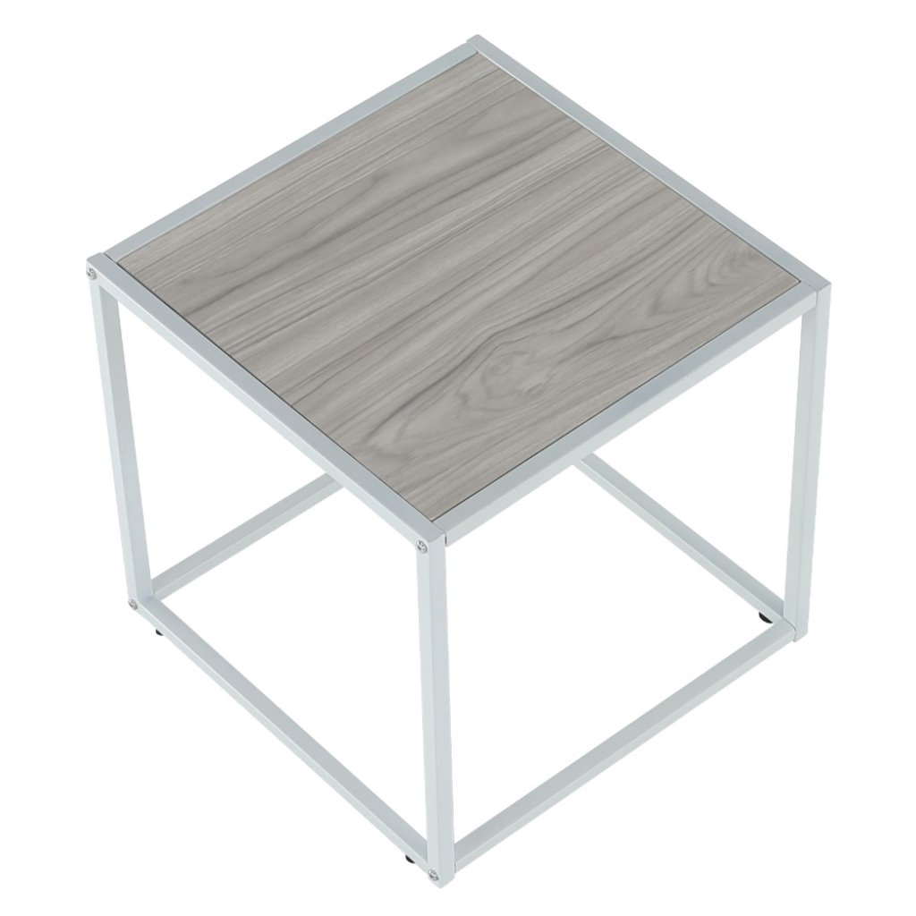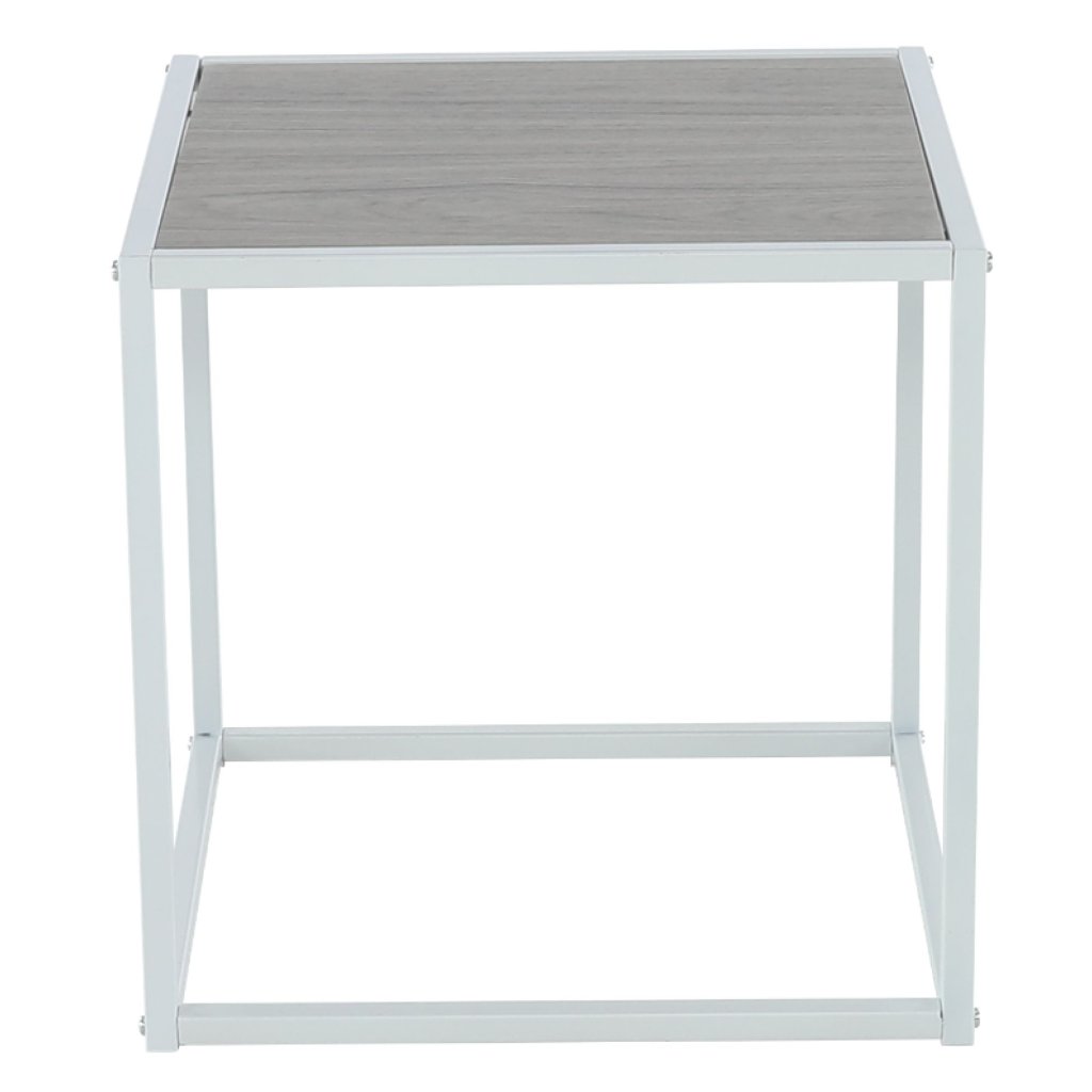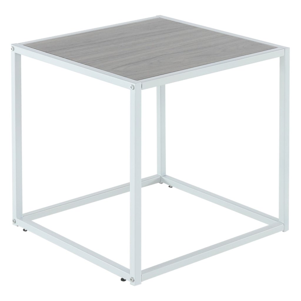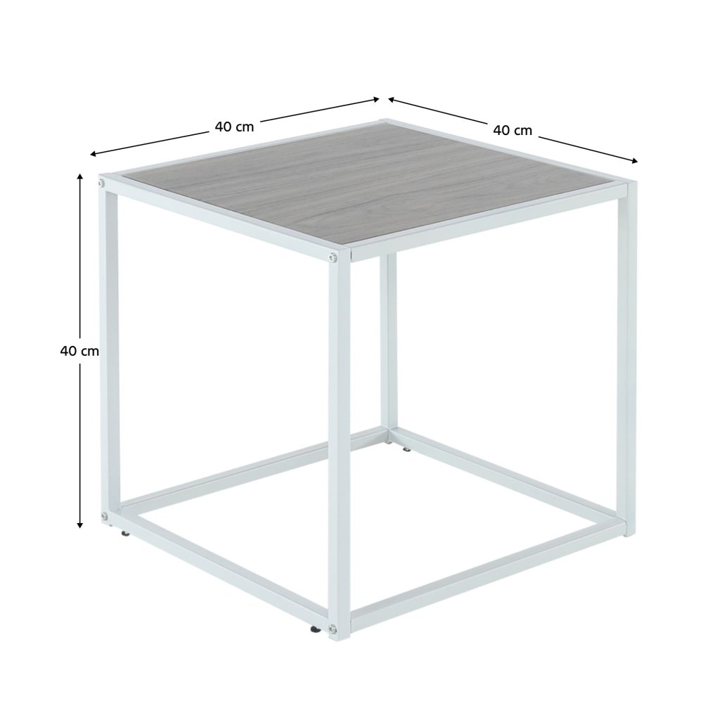 Elegantný príručný stolík v kombinácii dubového dreva a bielej farby. Vyrobený z MDF a kovu, s rozmermi 40x40x40 cm. Dodáva sa v demonte, ideálny pre moderné interiéry.