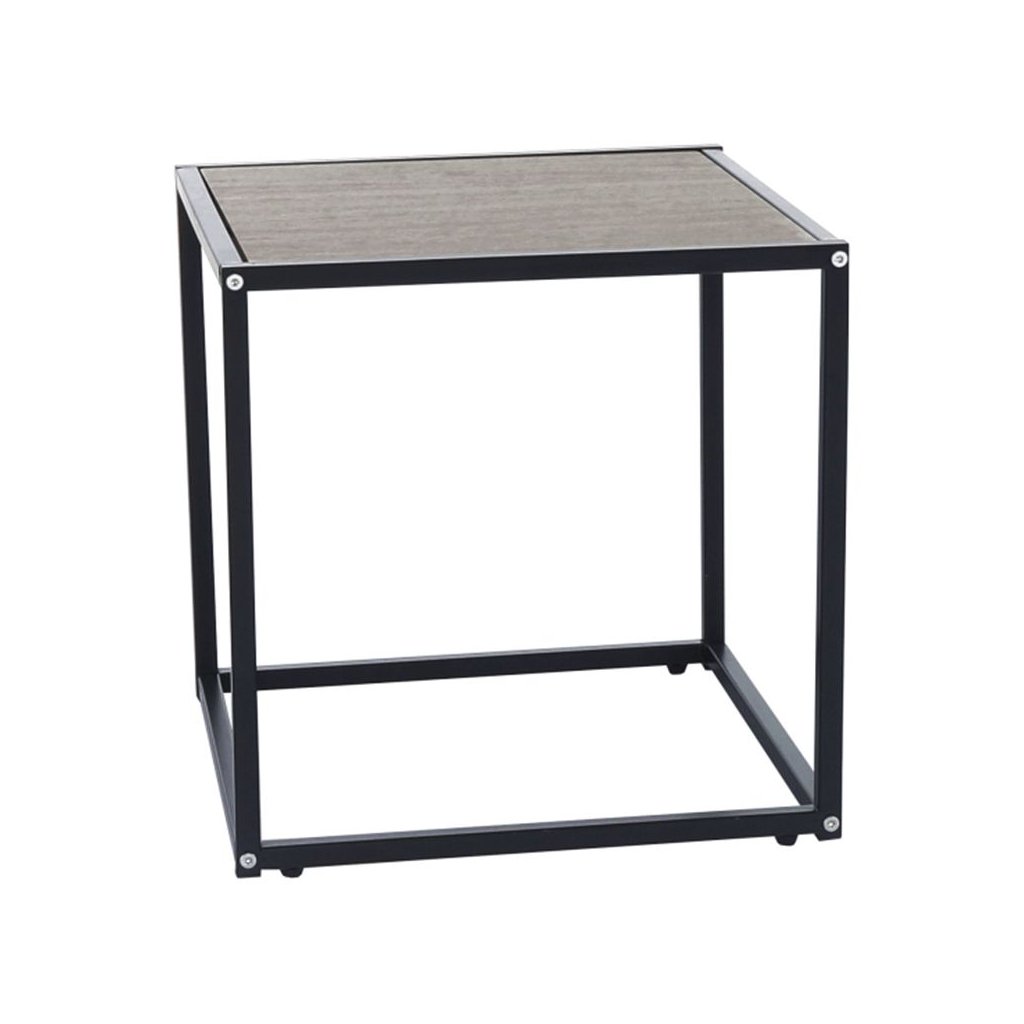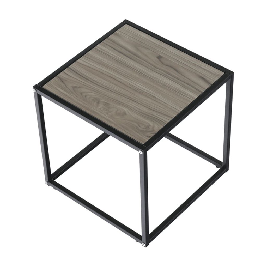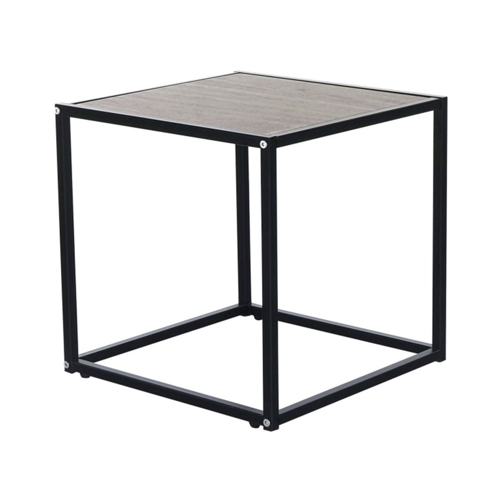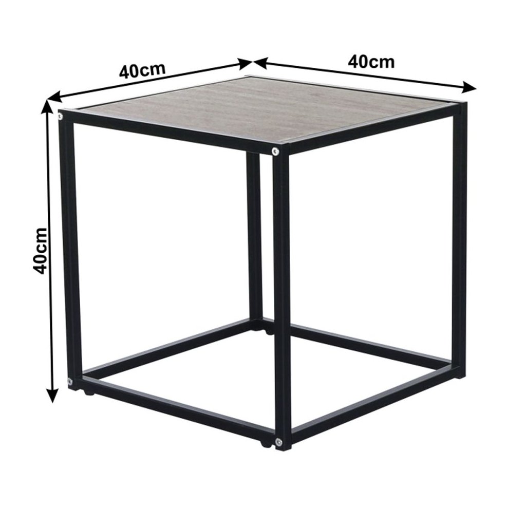 Elegantný príručný stolík JAKIM v kombinácii dubového dreva a čierneho kovu. Rozmery 40x40x40 cm, ideálny pre moderné interiéry. Dodávané v demonte.