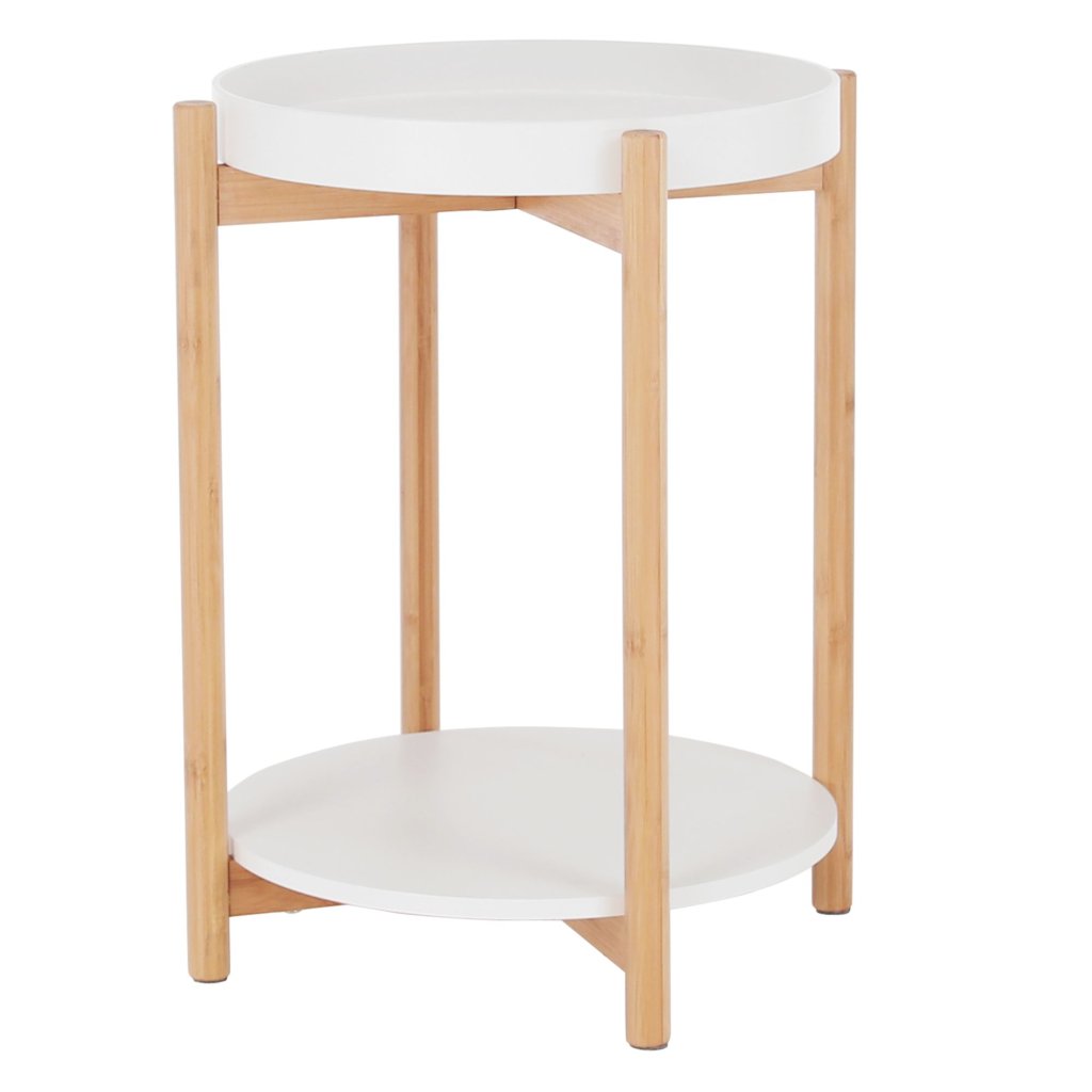 Príručný stolík – KABRA, Biela/prírodná - funkčnosť a elegancia v jednom.
