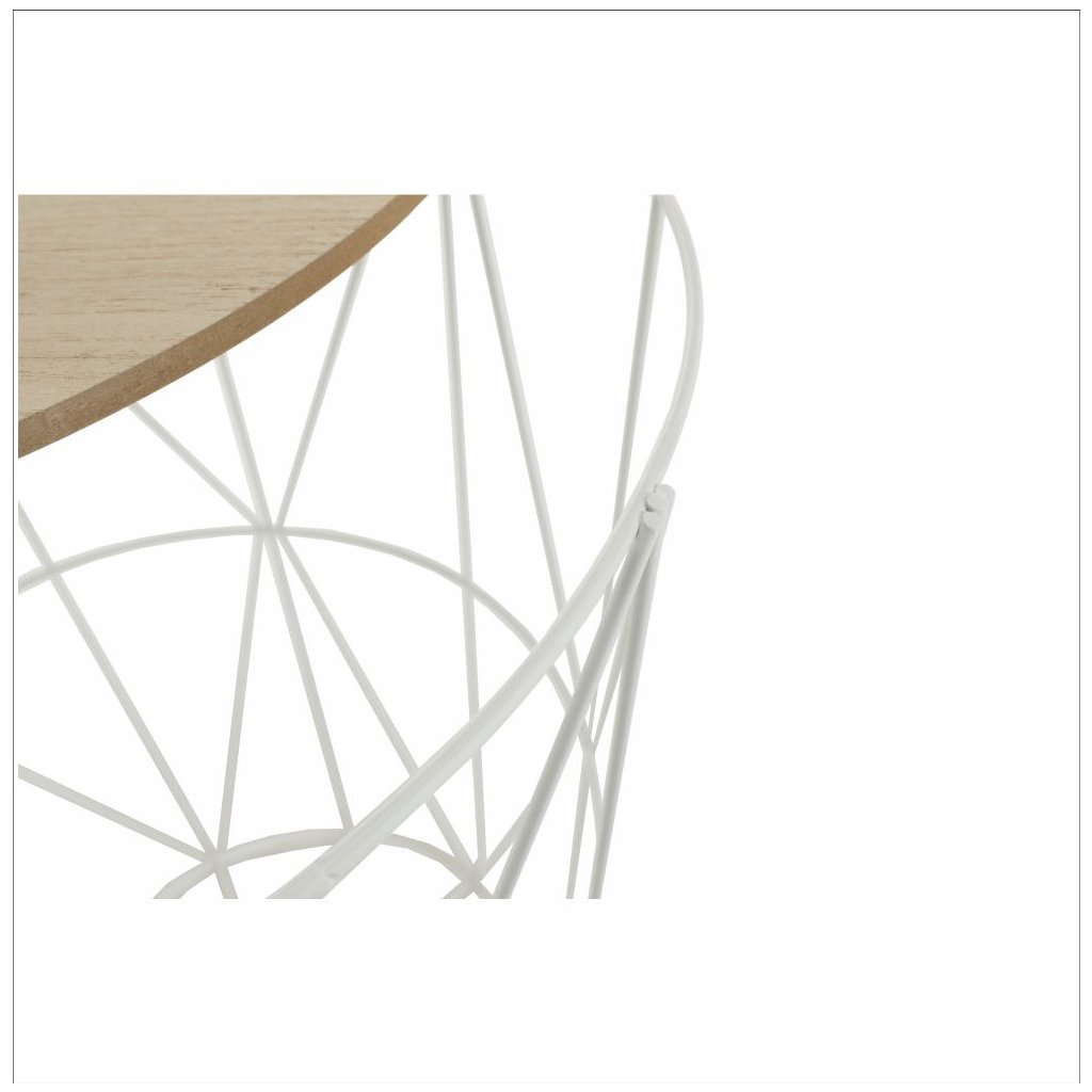 Príručný stolík NANCER 3 kombinuje prírodný vzhľad s bielou farbou. Vyrobený z MDF a kovu, jeho rozmery sú 40x40x48 cm. Dodávaný v monte, ideálny do každého interiéru.