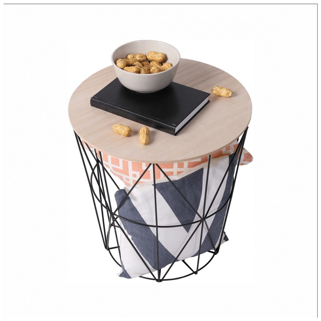 Príručný stolík NANCER 3 kombinuje prírodné MDF a čierny kov. S rozmermi 40x40x48 cm je ideálny na odloženie kníh alebo nápojov. Dodávaný v monte.