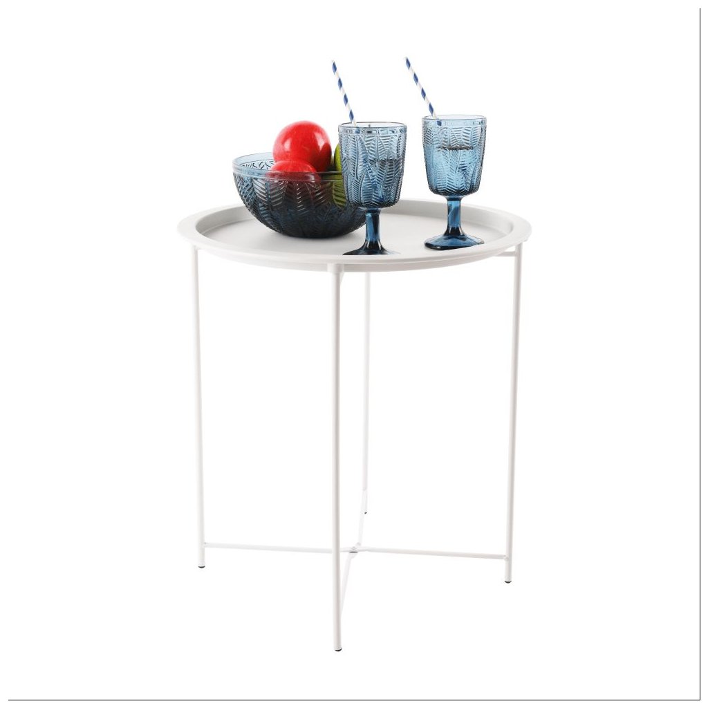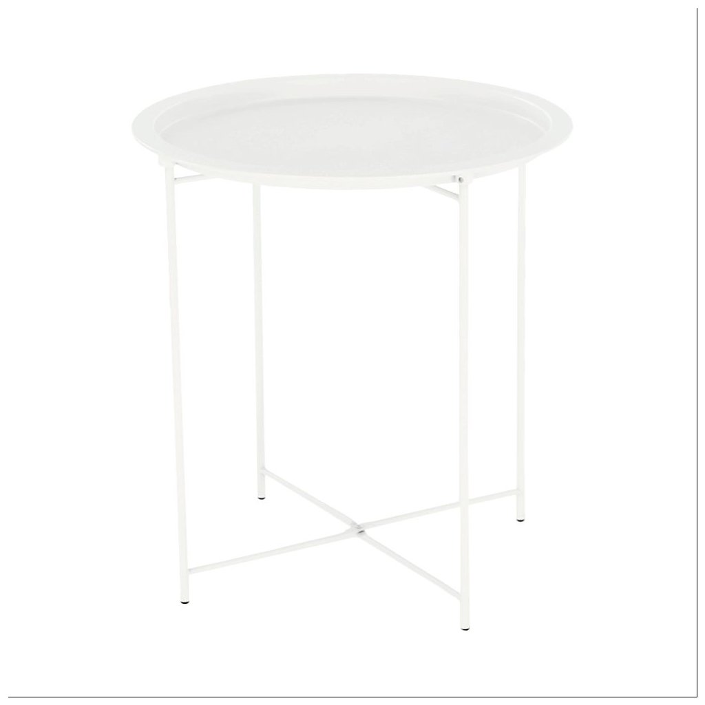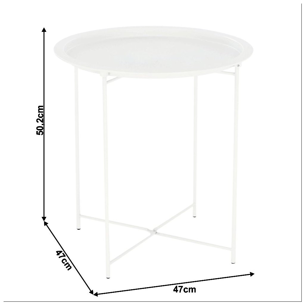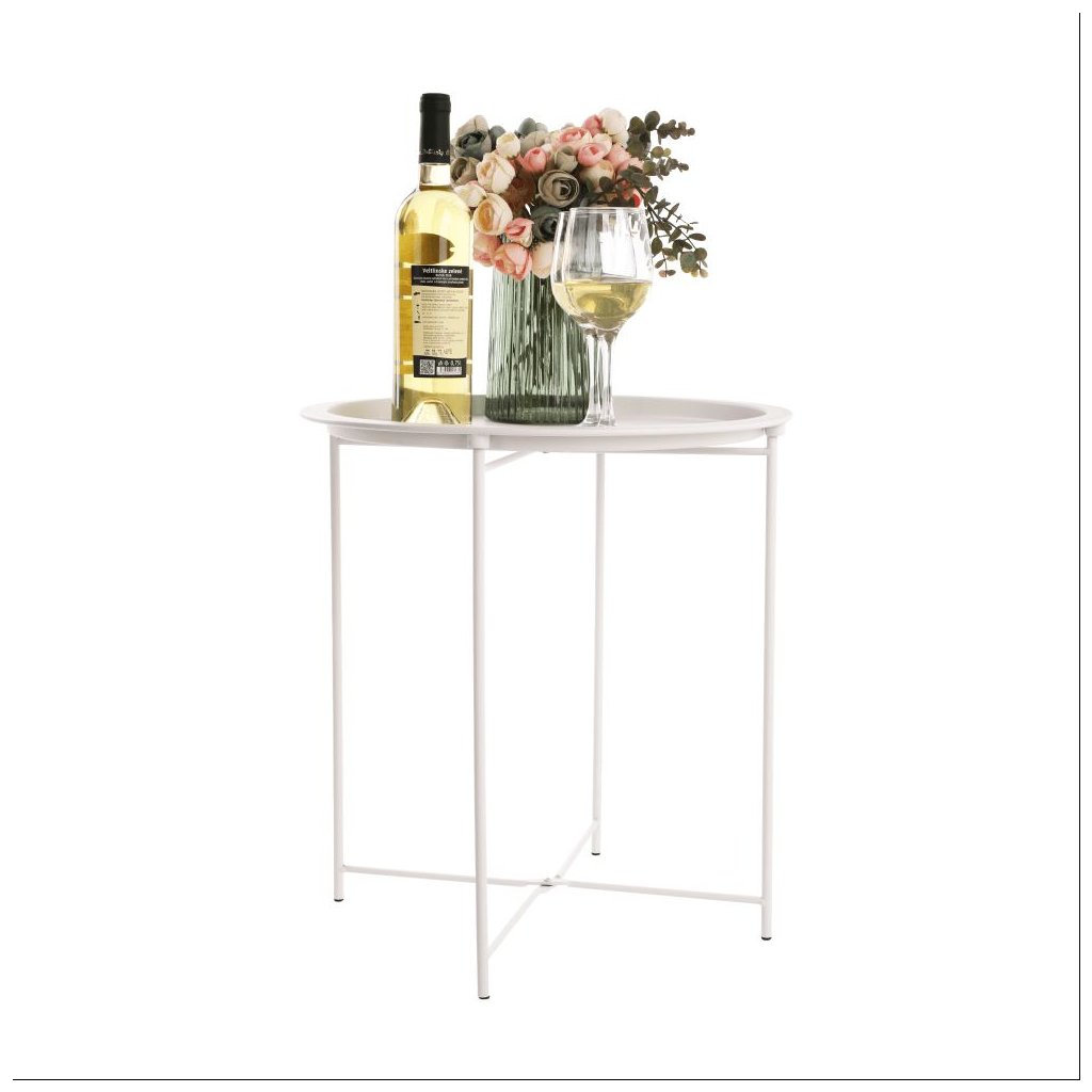 Príručný stolík RENDER v bielej farbe s kovovou konštrukciou a odnímateľnou táckou. Rozmery 47x47x50,2 cm, nosnosť 8 kg. Ideálny do každého interiéru v retro štýle. Dodávané v demonte.
