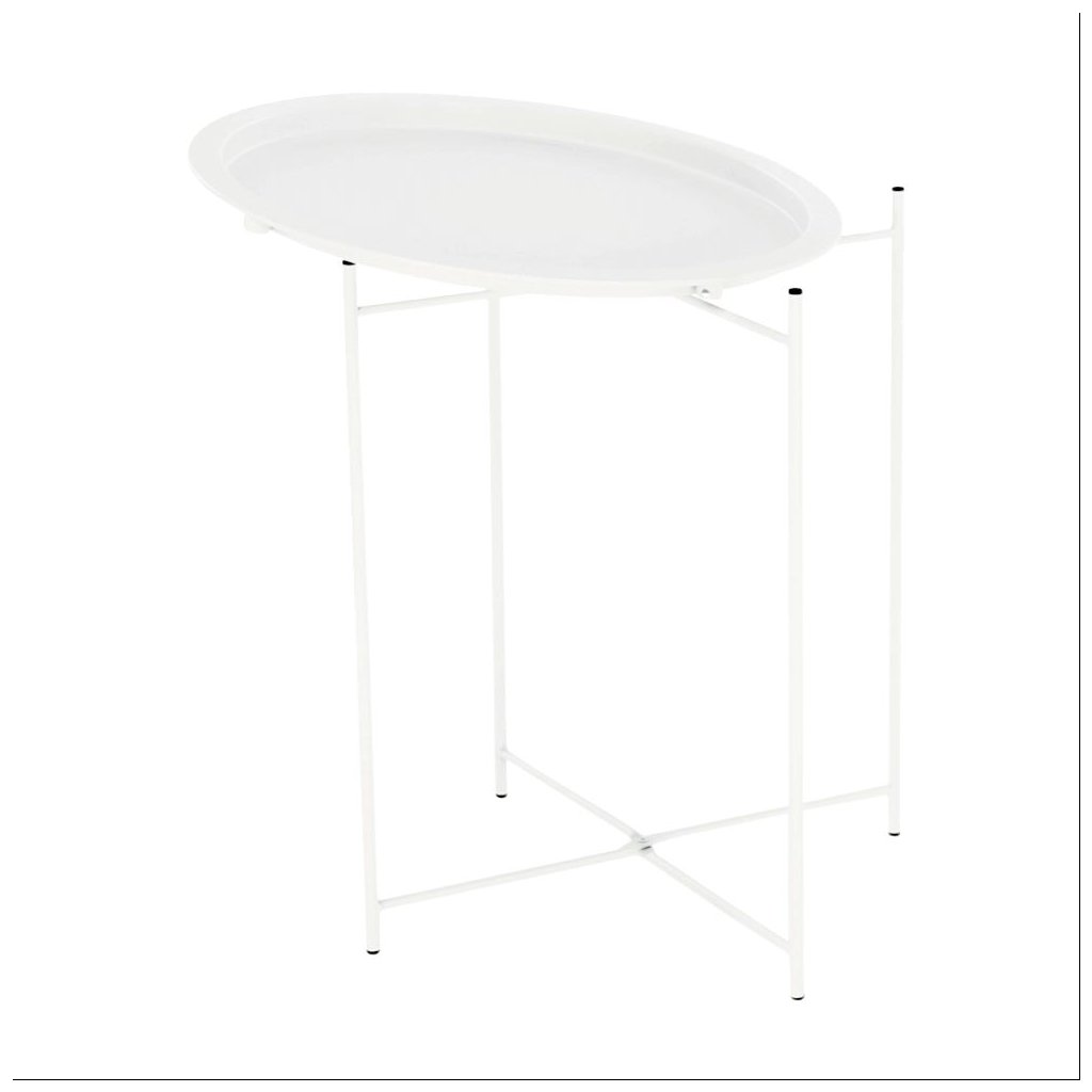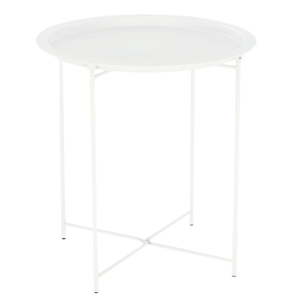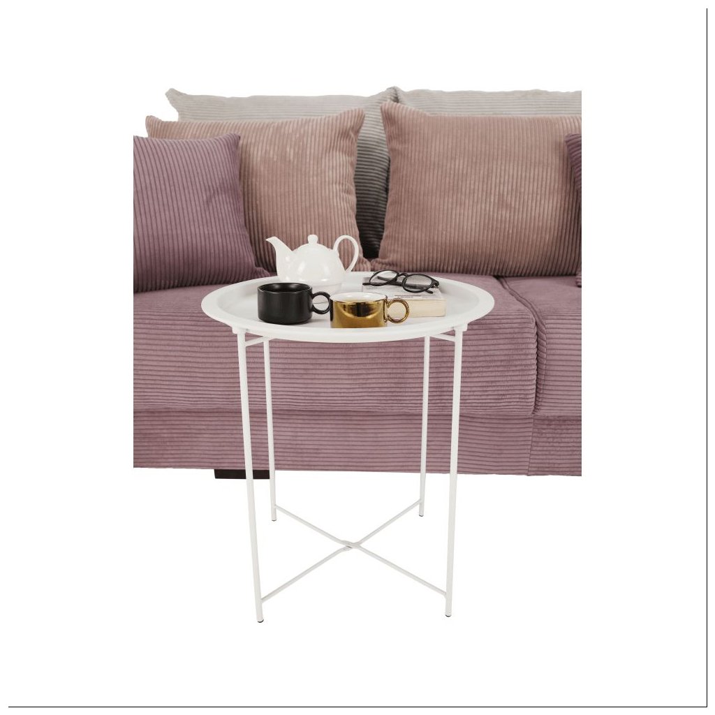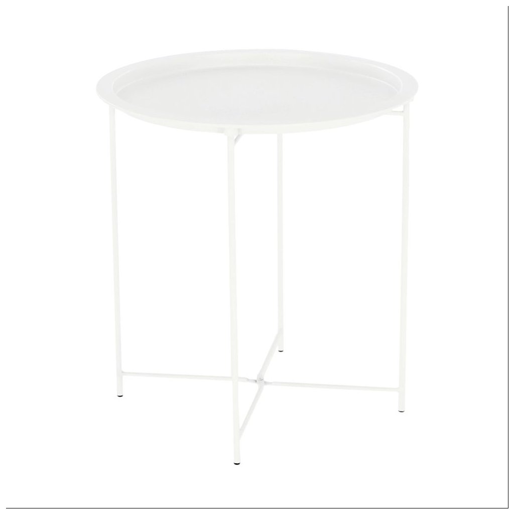 Príručný stolík RENDER v bielej farbe s kovovou konštrukciou a odnímateľnou táckou. Rozmery 47x47x50,2 cm, nosnosť 8 kg. Ideálny do každého interiéru v retro štýle. Dodávané v demonte.
