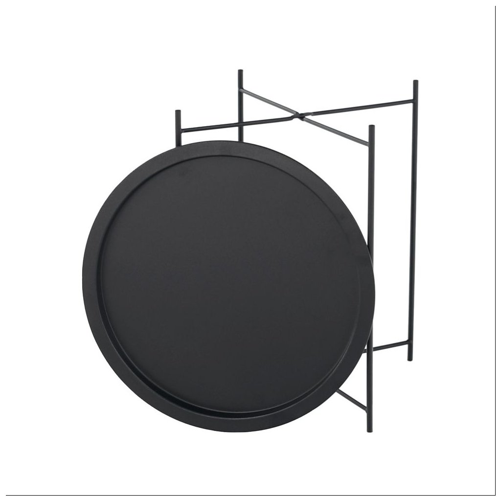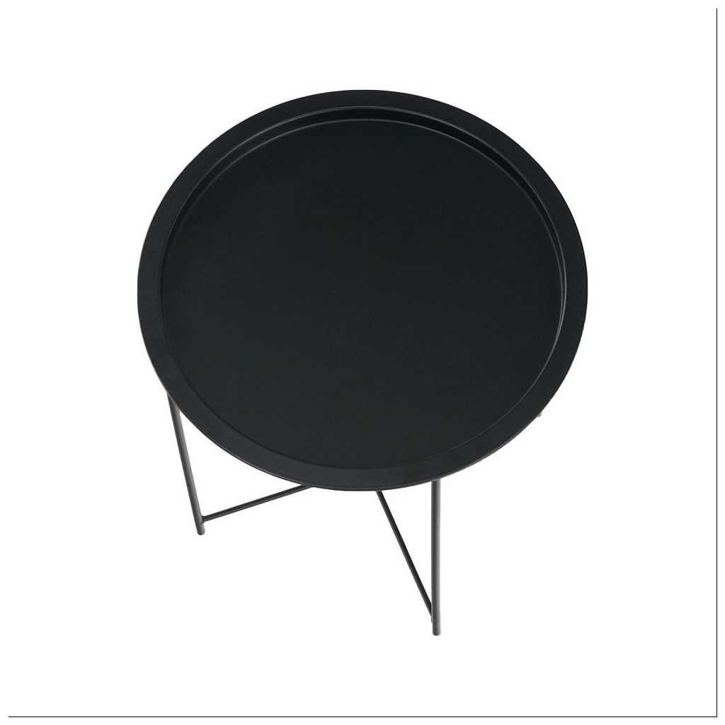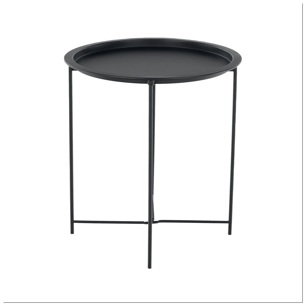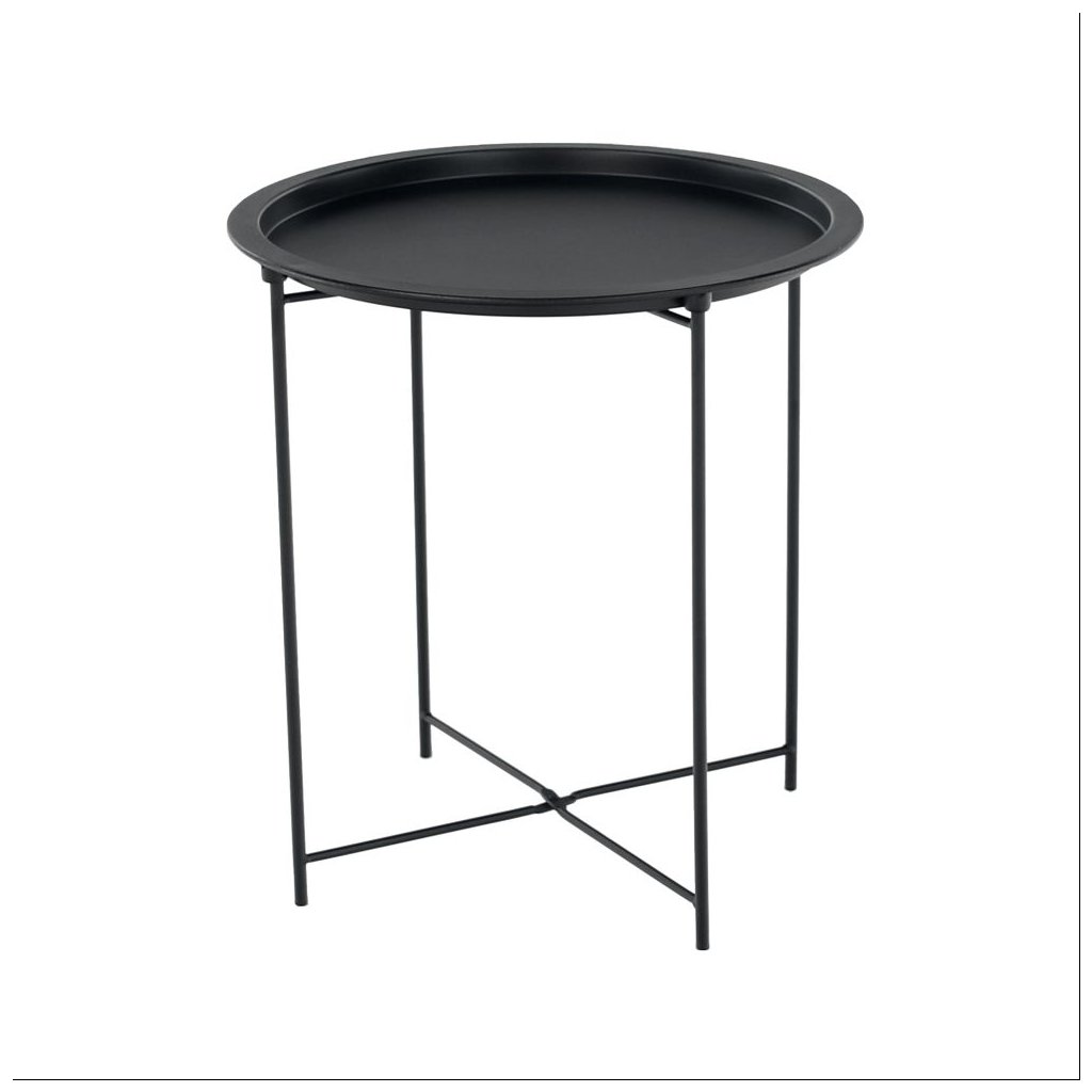 Príručný stolík RENDER v čiernej farbe je praktickým doplnkom do každého interiéru. S pevnou kovovou konštrukciou a odnímateľnou táckou ponúka funkčnosť a retro štýl. Rozmery 47x47x50,2 cm, nosnosť 8