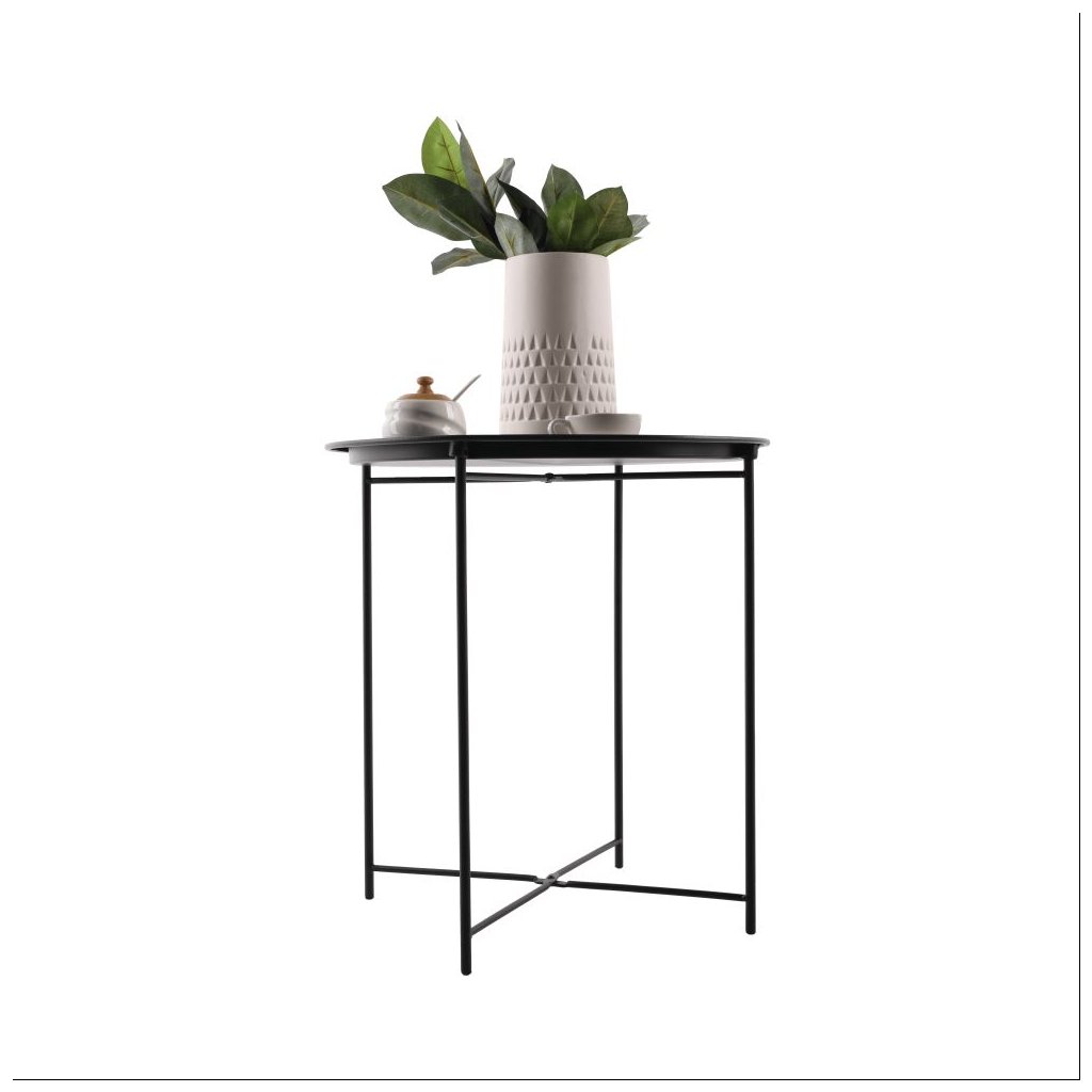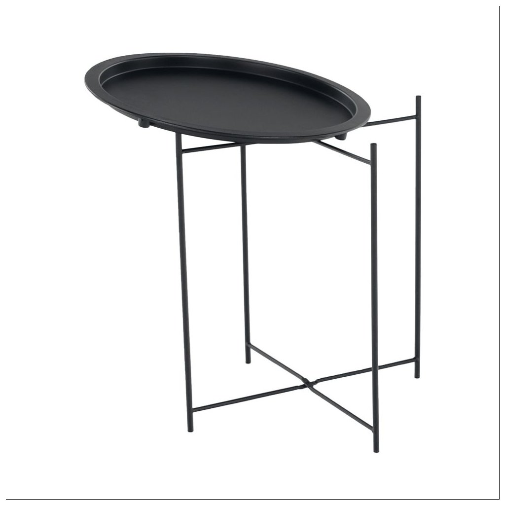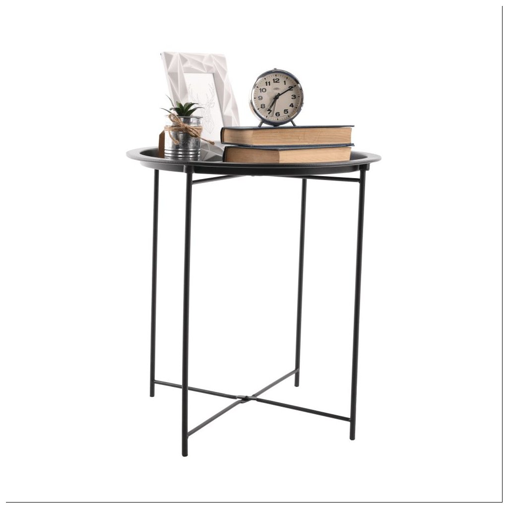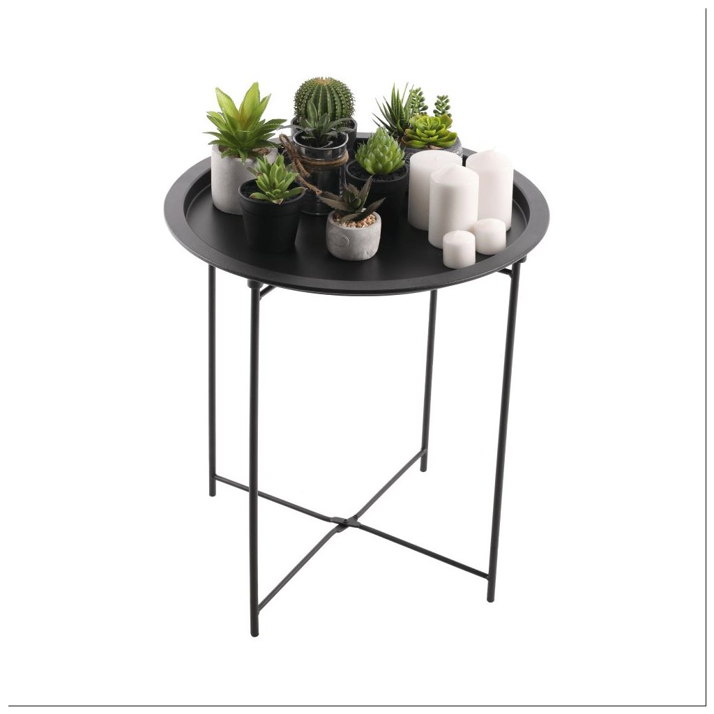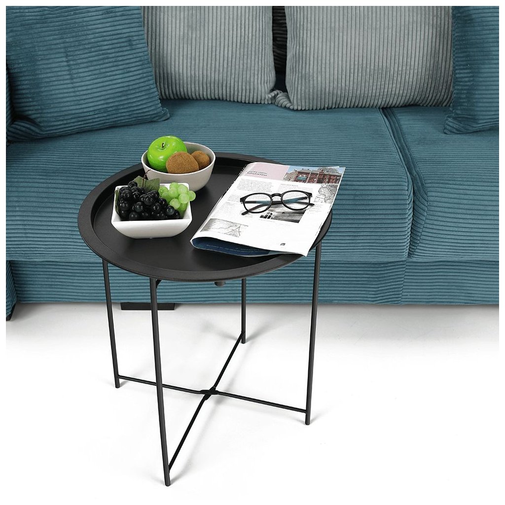 Príručný stolík RENDER v čiernej farbe je praktickým doplnkom do každého interiéru. S pevnou kovovou konštrukciou a odnímateľnou táckou ponúka funkčnosť a retro štýl. Rozmery 47x47x50,2 cm, nosnosť 8