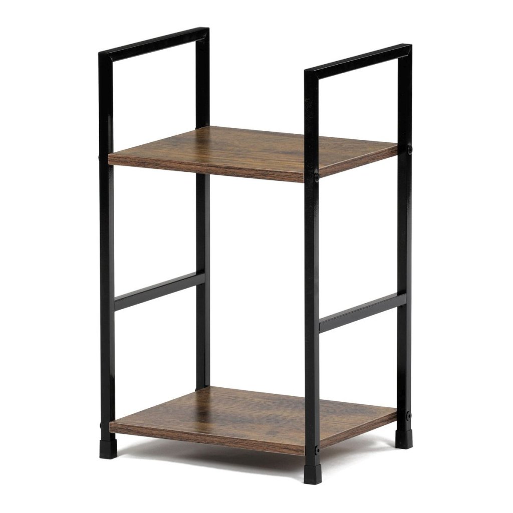 Predstavujeme praktický dvojposchodový regál v industriálnom štýle. Kombinuje kovový rám s MDF doskami v dekóre starého dreva, ideálny na uskladnenie dekorácií a kníh.