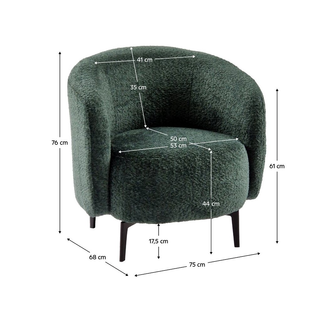 Kreslo je vyrobené z kvalitnej látky Abriamo Bouclé, ktorá zaručuje moderný vzhľad a odolnosť. Jeho výnimočná konštrukcia a pohodlná výplň zabezpečujú maximálny komfort, zatiaľ čo pevné kovové nohy dodávajú stabilitu a trvácnosť.