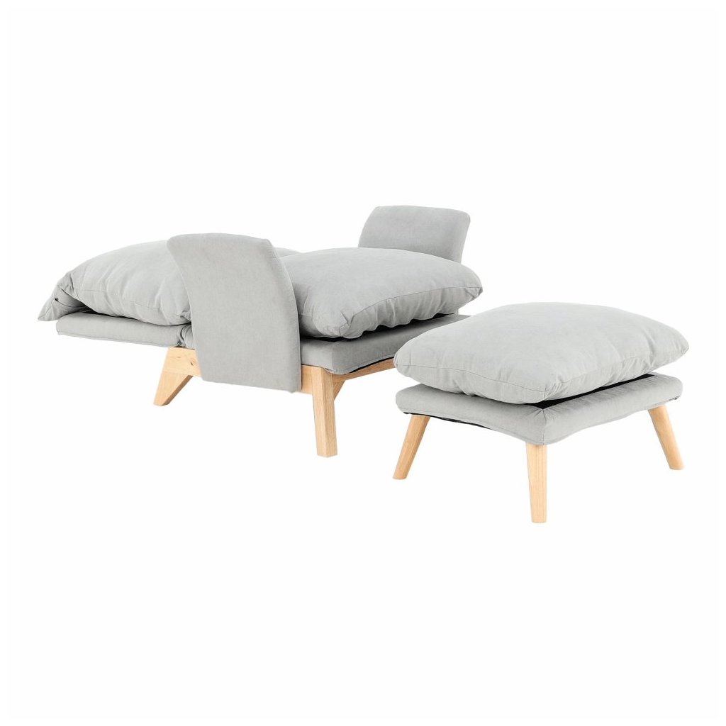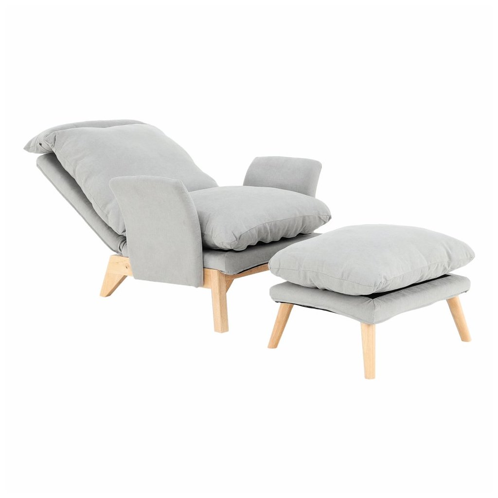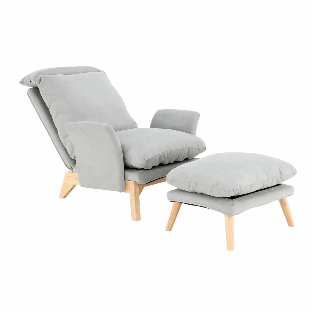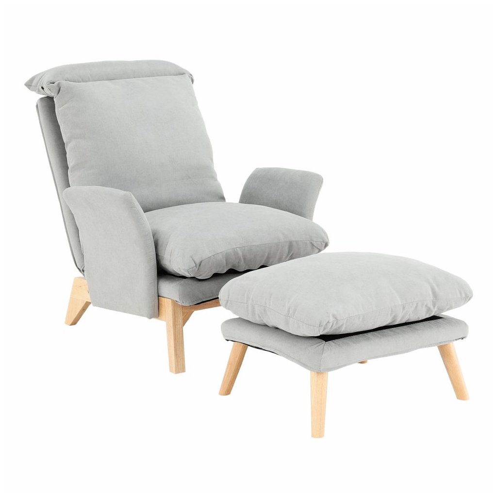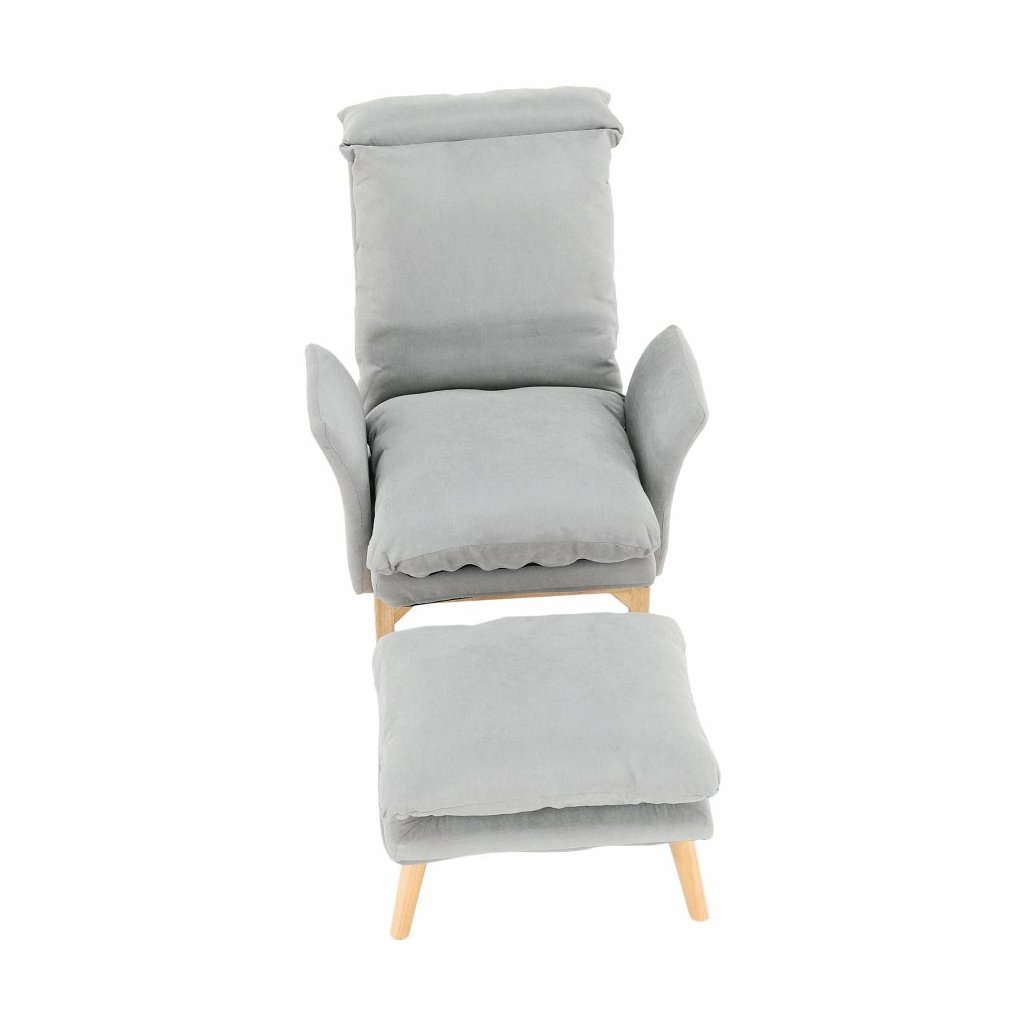Relaxačné kreslo ZANDER s podnožkou v svetlosivej látke je ideálnym miestom na odpočinok. Polohovateľná opierka a masívne drevené nohy dodávajú eleganciu a pohodlie. Rozmery: 82x83x99 cm.