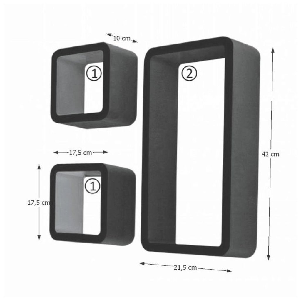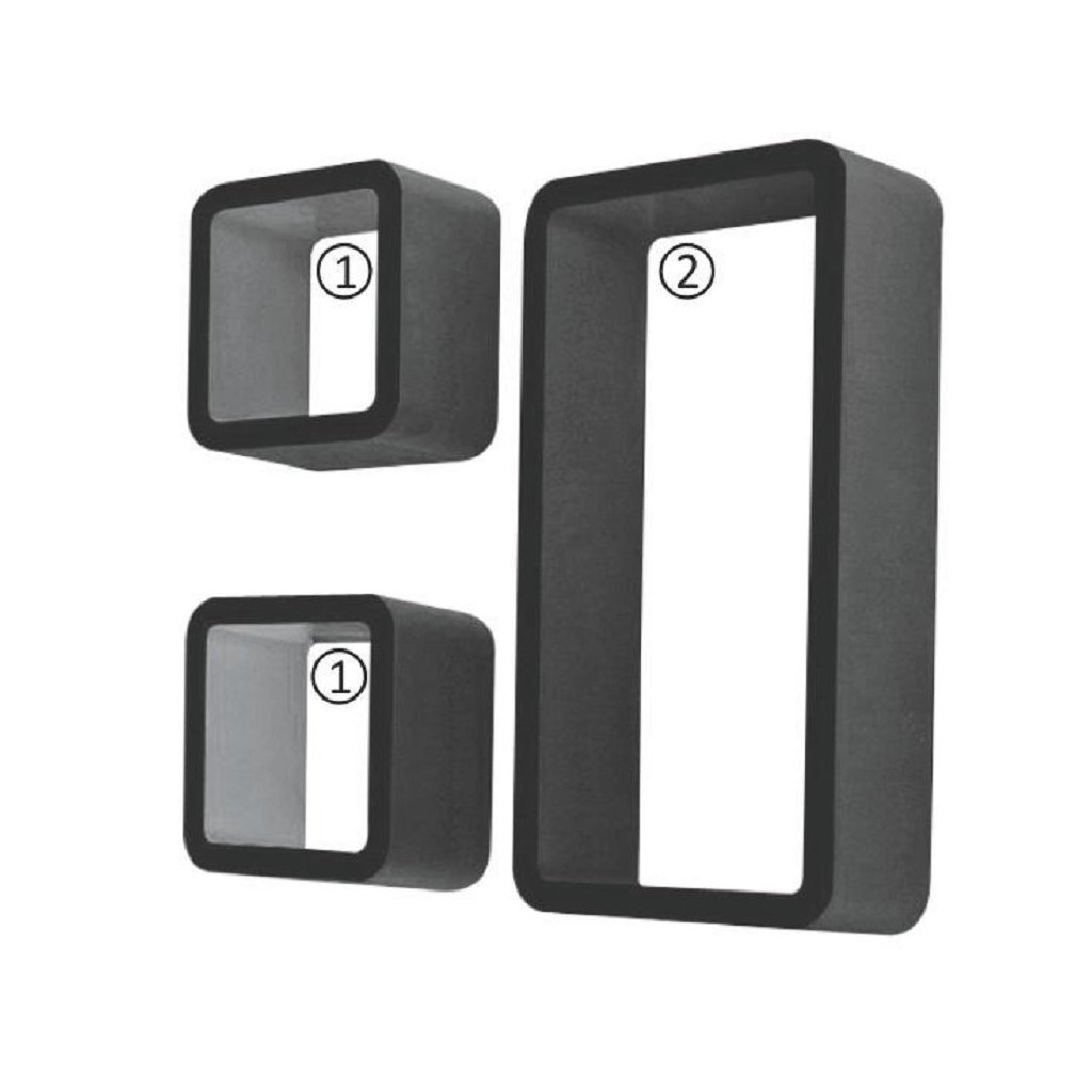 Sada poličiek TRIX obsahuje 3 čierne MDF poličky rôznych rozmerov. Ideálne na dekoráciu a organizáciu. Rozmery: 2x17,5x10 cm a 1x42x10x21,5 cm. Cena je za celú sadu.