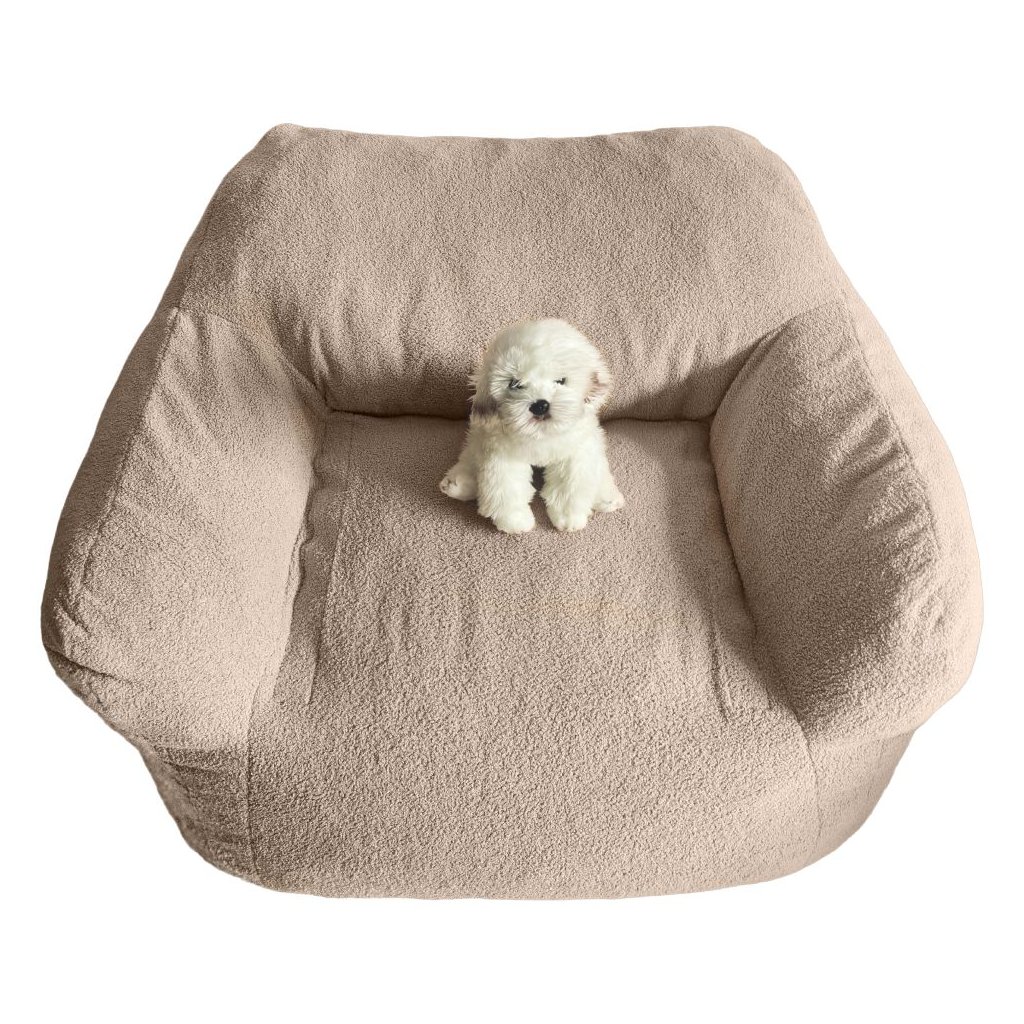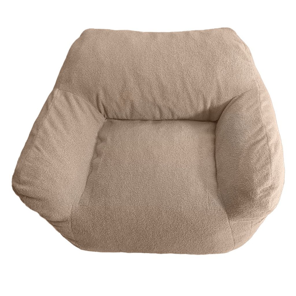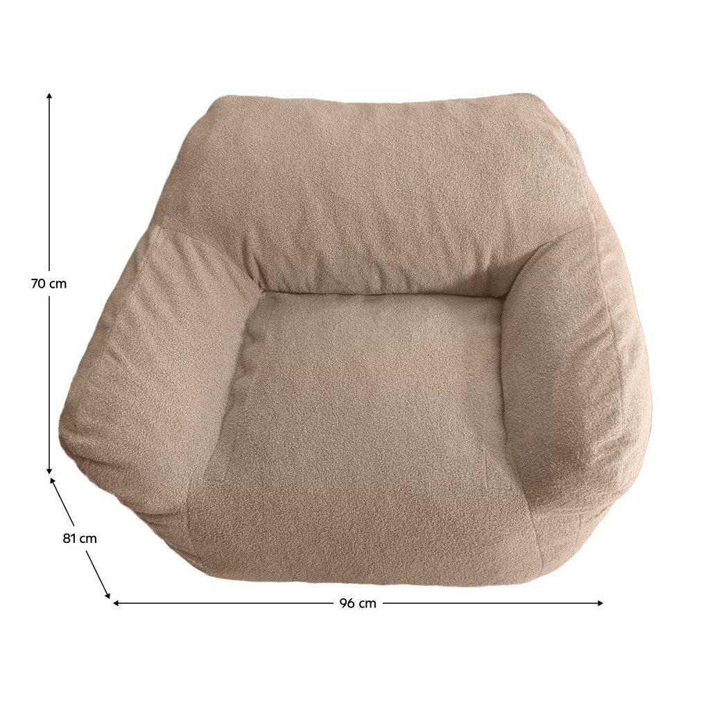 Sedací vak FUFY v svetlohnedej farbe ponúka pohodlie a štýlový dizajn. Je vyrobený z odolnej látky Bouclé a kompresnej peny s nosnosťou 90 kg. Ľahko sa udržuje a čistí. Rozmery 96x81x70 cm.