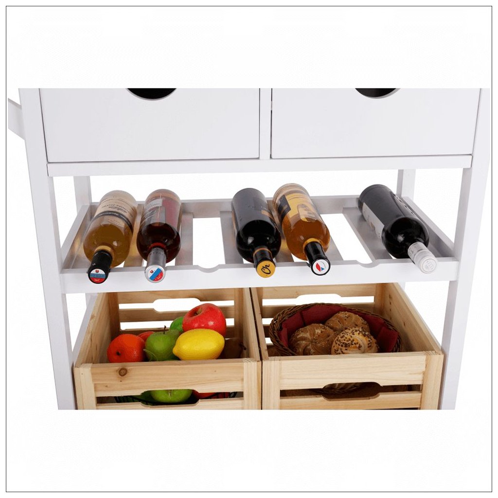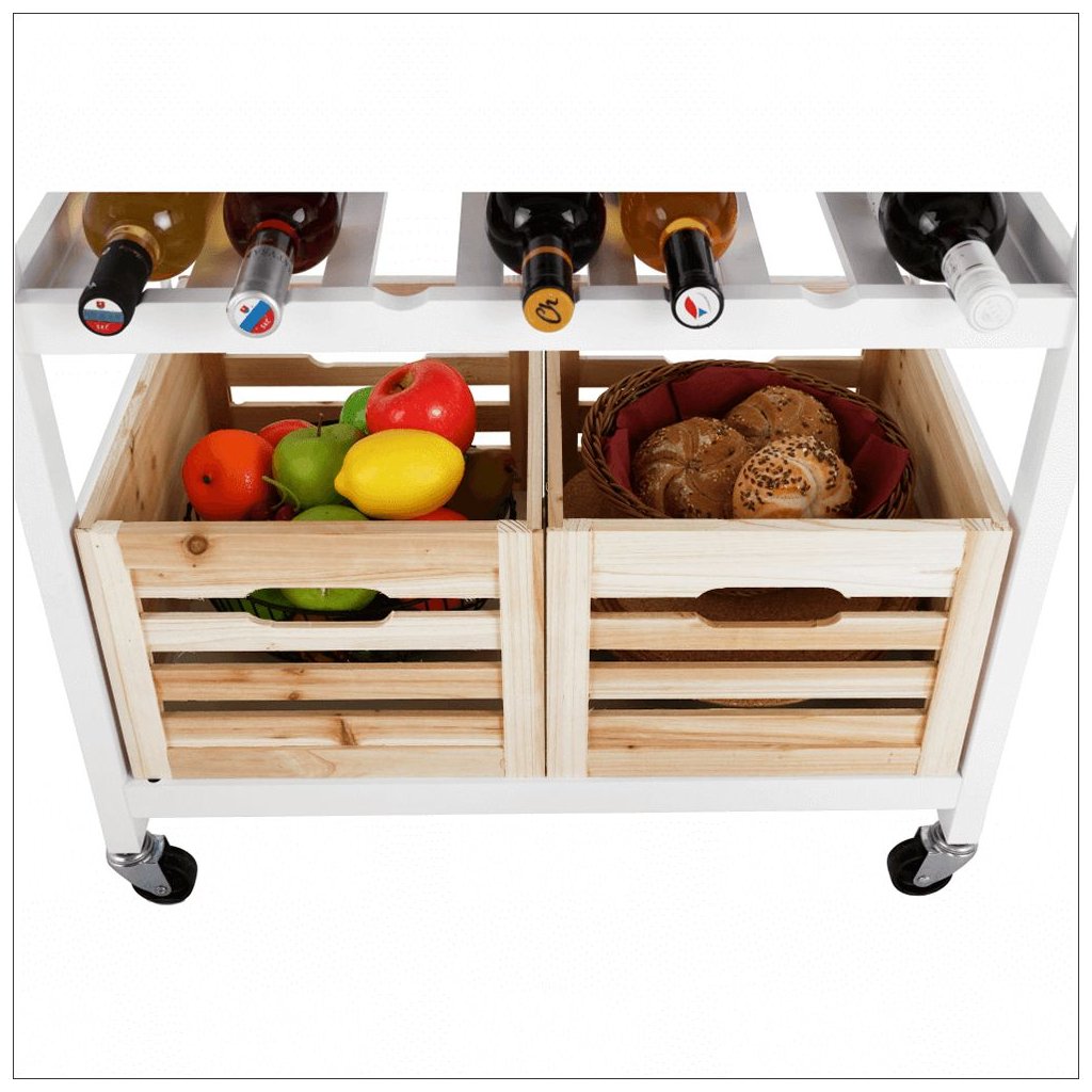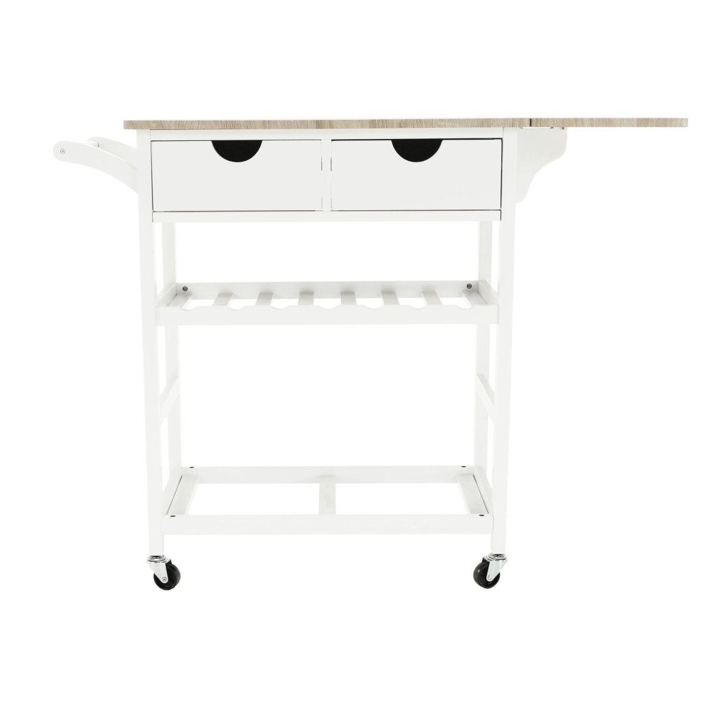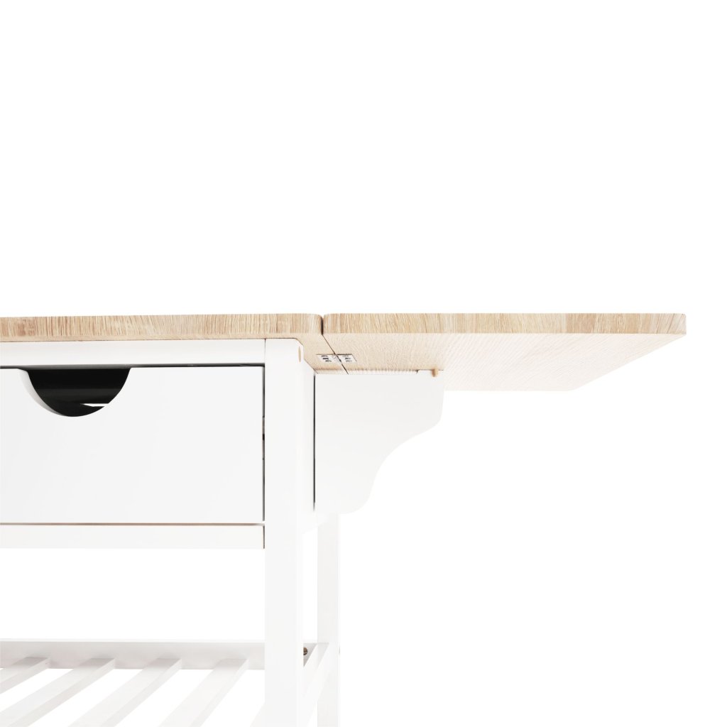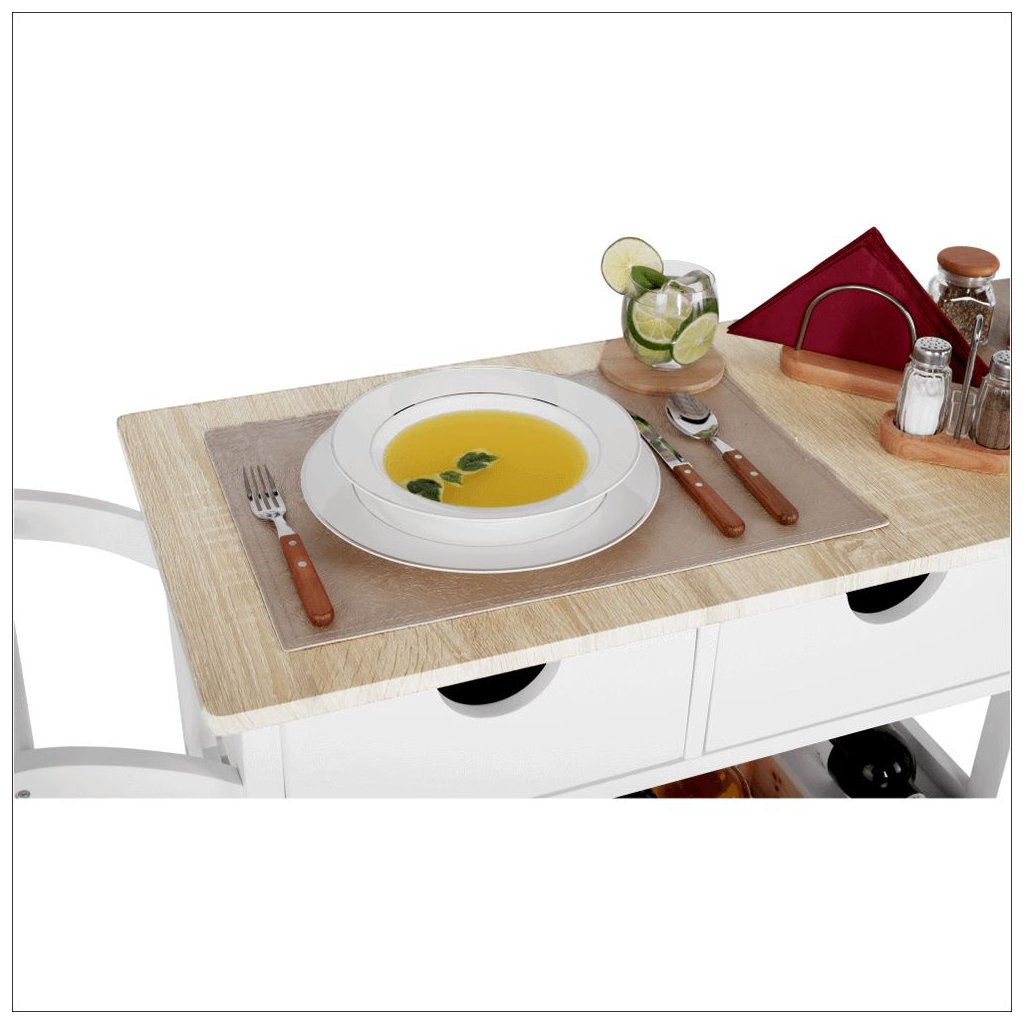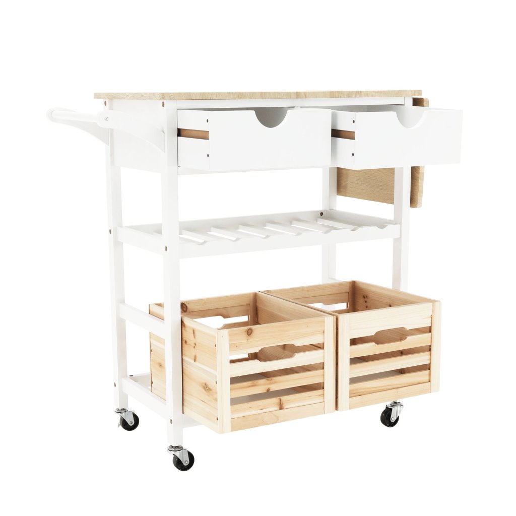 Servírovací stolík PASSAT v bielej a prírodnej farbe kombinuje moderný dizajn s praktickosťou. Sklápacia doska, kolieska, 2 šuplíky a vyberateľné košíky zabezpečujú dostatok úložného priestoru. Dodáva