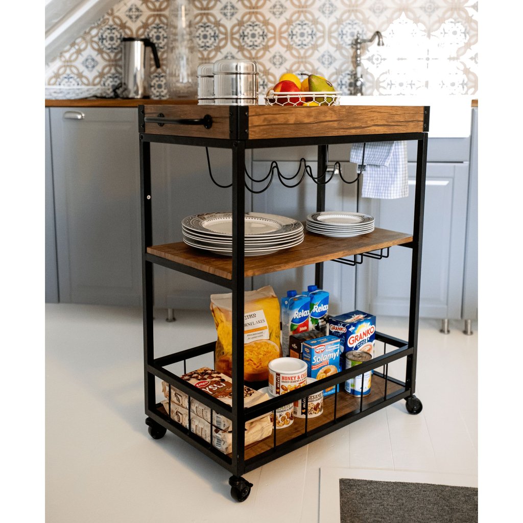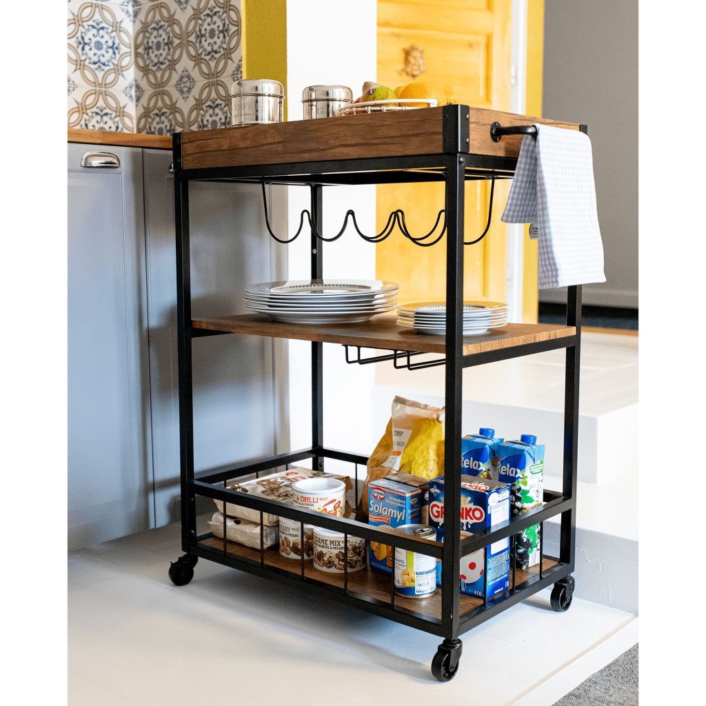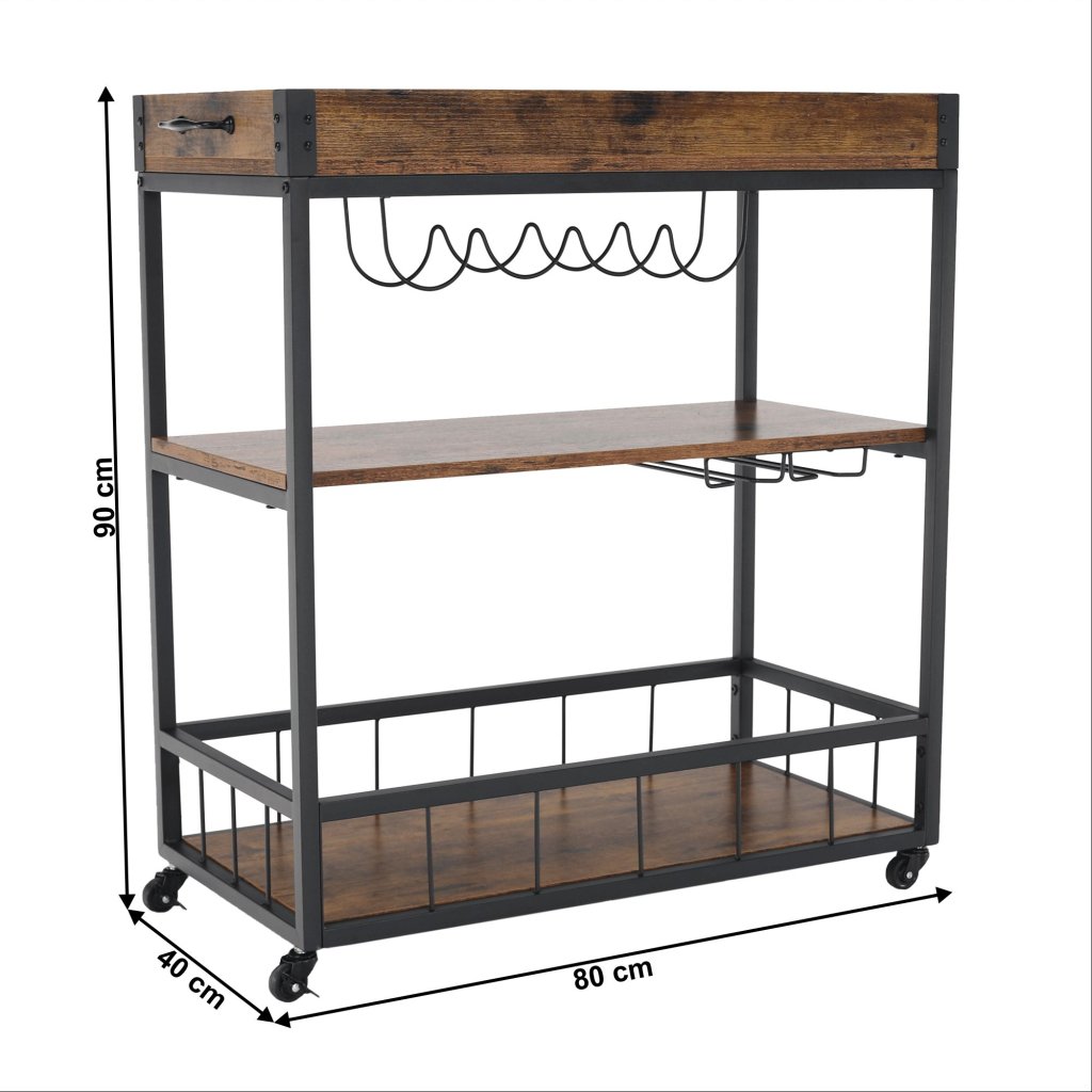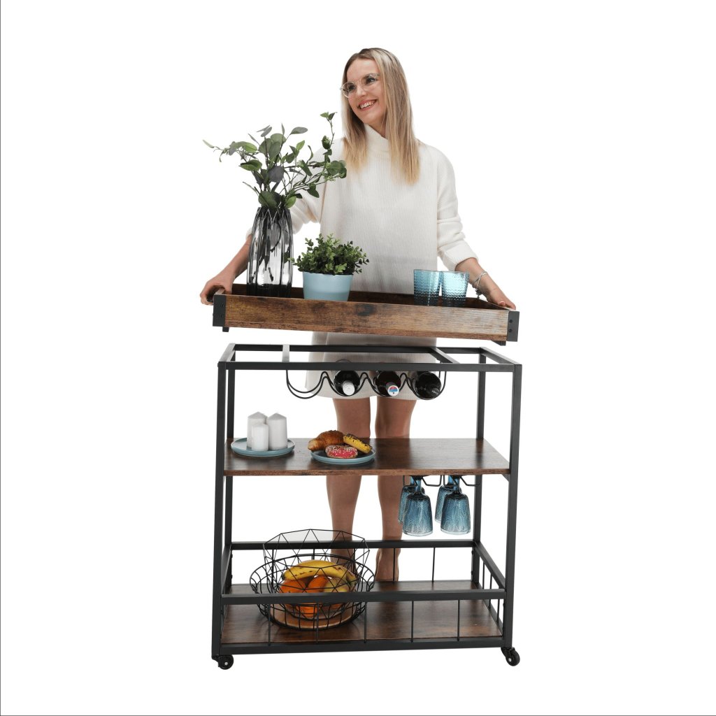 Vďaka svojmu rustikálnemu dizajnu a funkčným vlastnostiam sa tento stolík hodí do každej kuchyne, obývačky či na terasu. S jeho mobilitou a praktickými držiakmi si môžete užívať pohodlné servírovanie kdekoľvek a kedykoľvek.