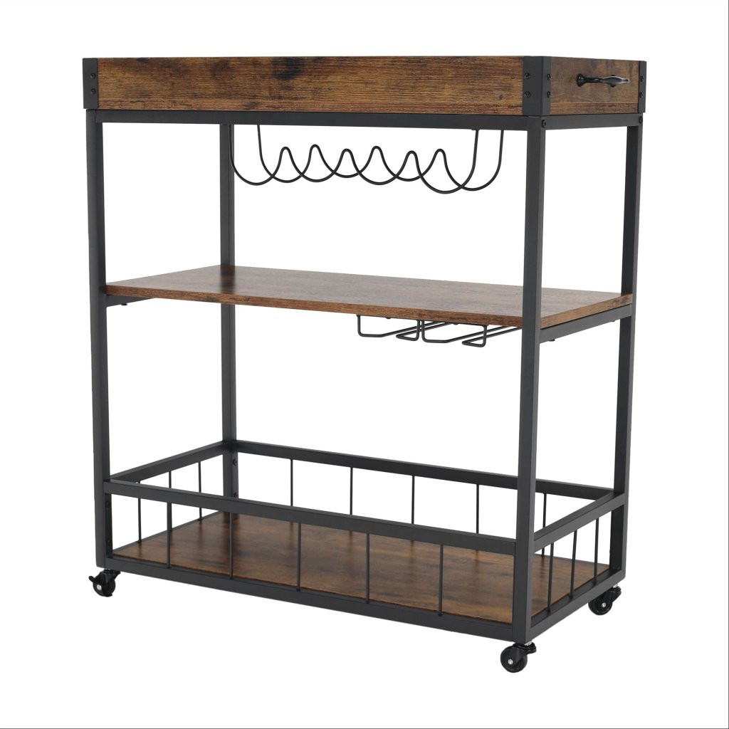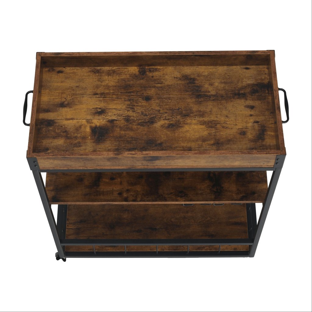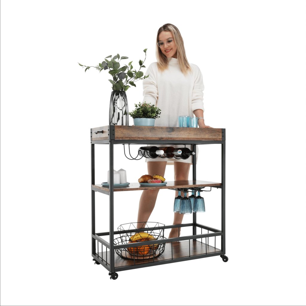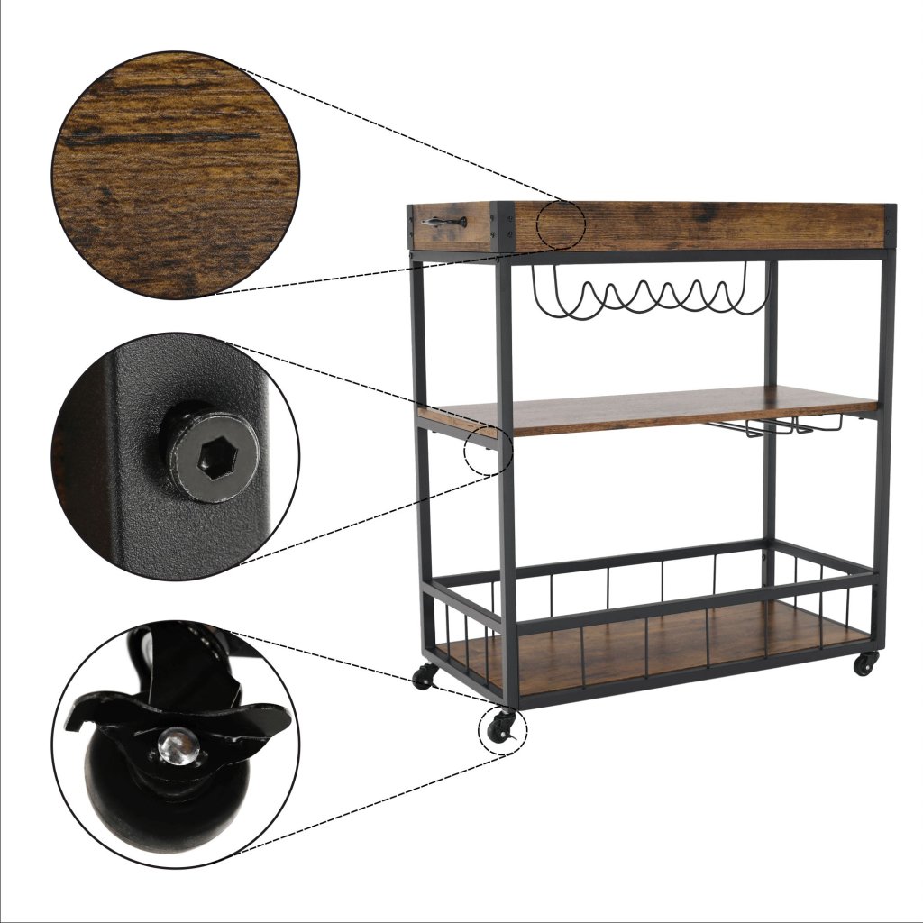Vďaka svojmu rustikálnemu dizajnu a funkčným vlastnostiam sa tento stolík hodí do každej kuchyne, obývačky či na terasu. S jeho mobilitou a praktickými držiakmi si môžete užívať pohodlné servírovanie kdekoľvek a kedykoľvek.