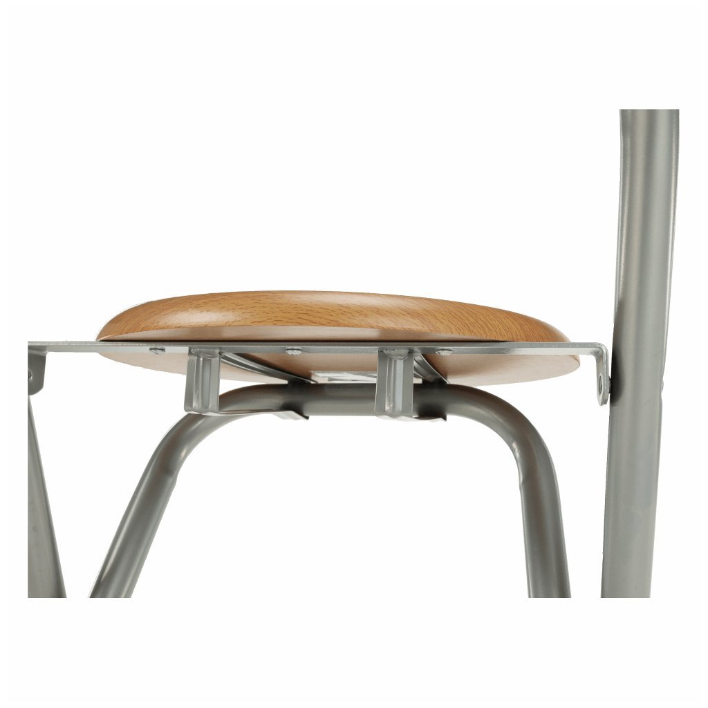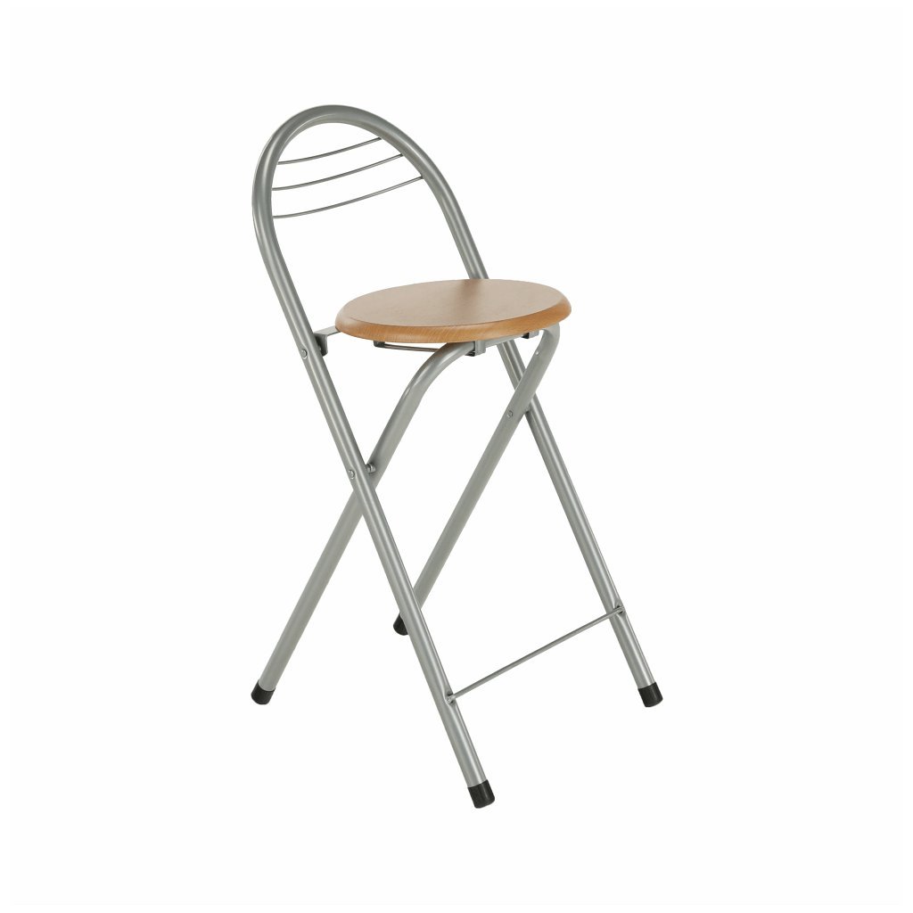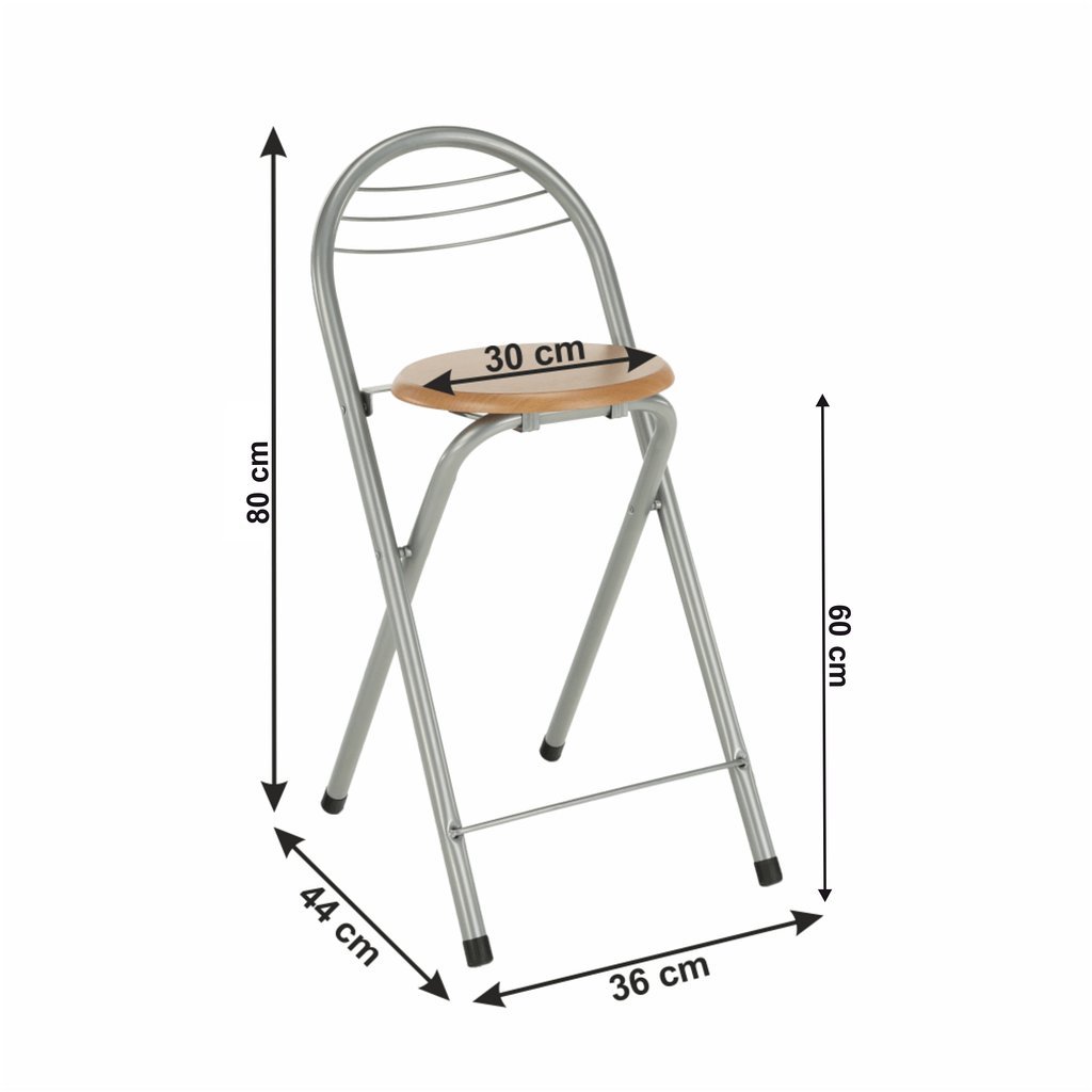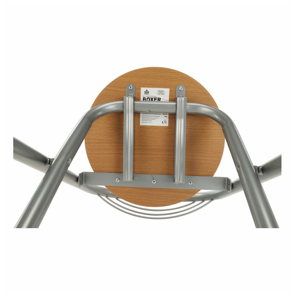 Skladacia barová stolička BOXER kombinuje kov s hliníkovým povrchom a bukovým drevom. Má priemer 39 cm a výšku sedu 59,9 cm. Dodáva sa v monte, váha len 3,4 kg. Ideálna pre moderné interiéry!