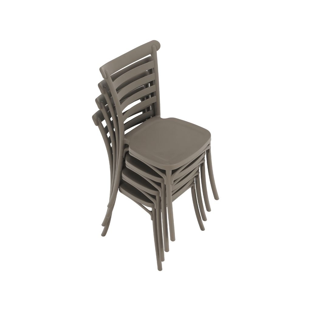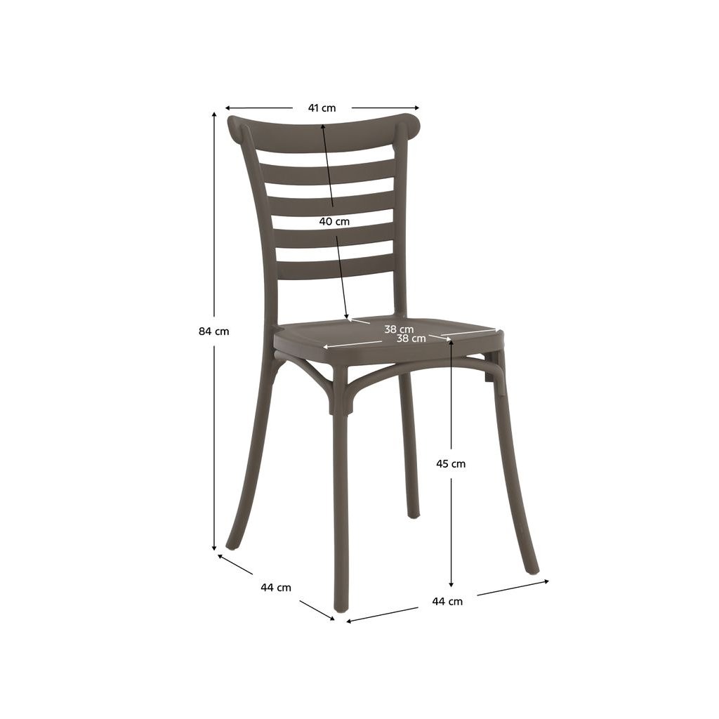 Stohovateľná stolička v elegantnej sivohnedej farbe je ideálnym riešením pre každého, kto hľadá funkčný a štýlový doplnok do svojho domova alebo na terasu. S jej minimalistickým dizajnom a praktickými vlastnosťami sa stane skvelým spoločníkom na každodenné používanie.