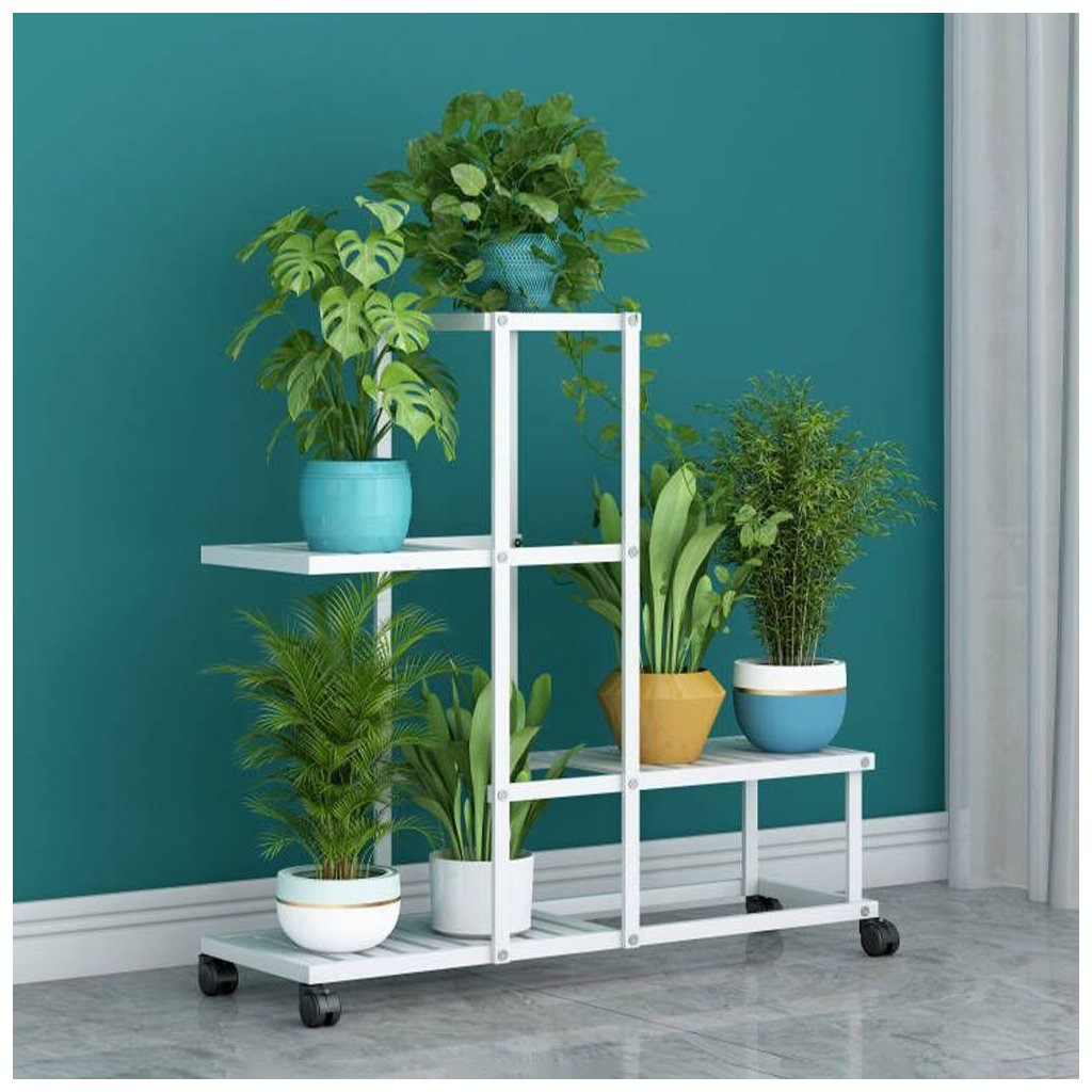 - Poličky: stojan disponuje štyrmi úrovňami na umiestnenie kvetináčov.