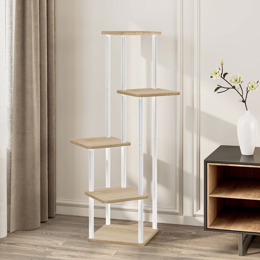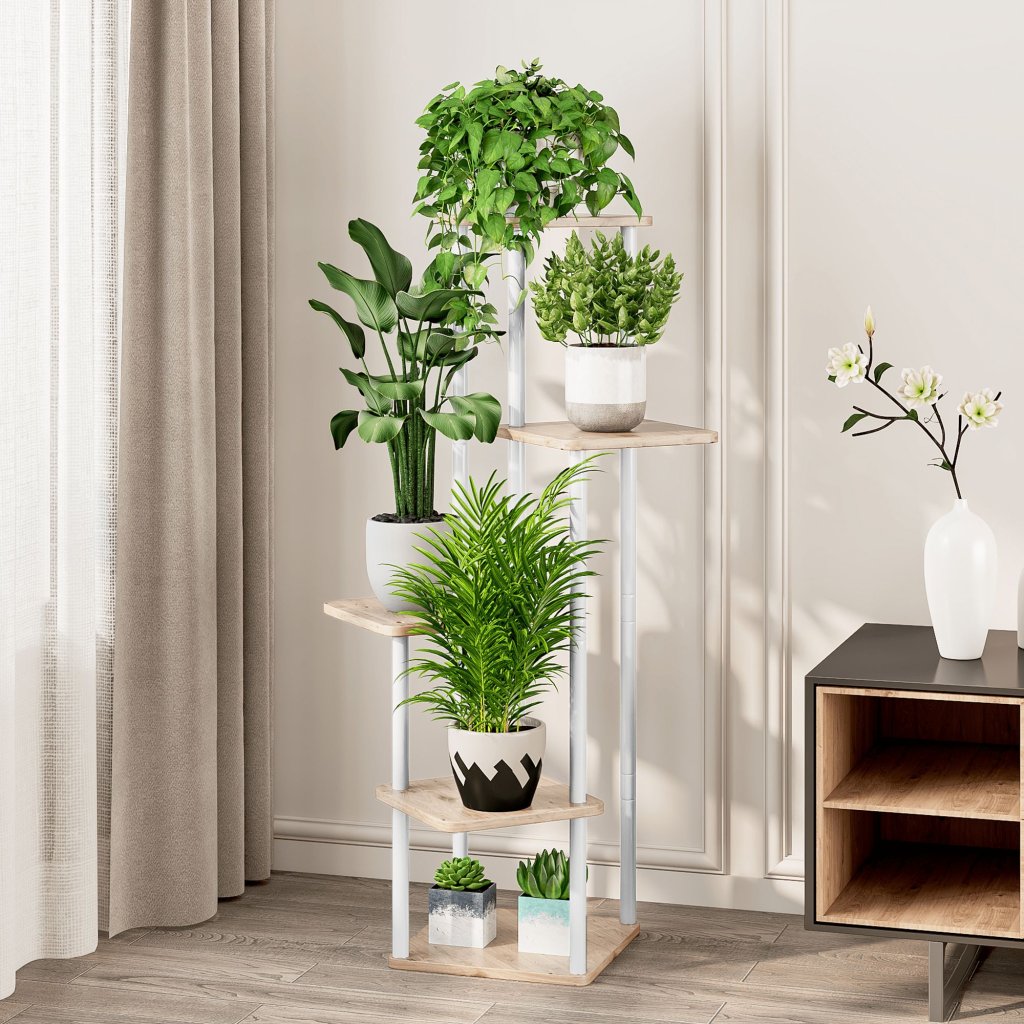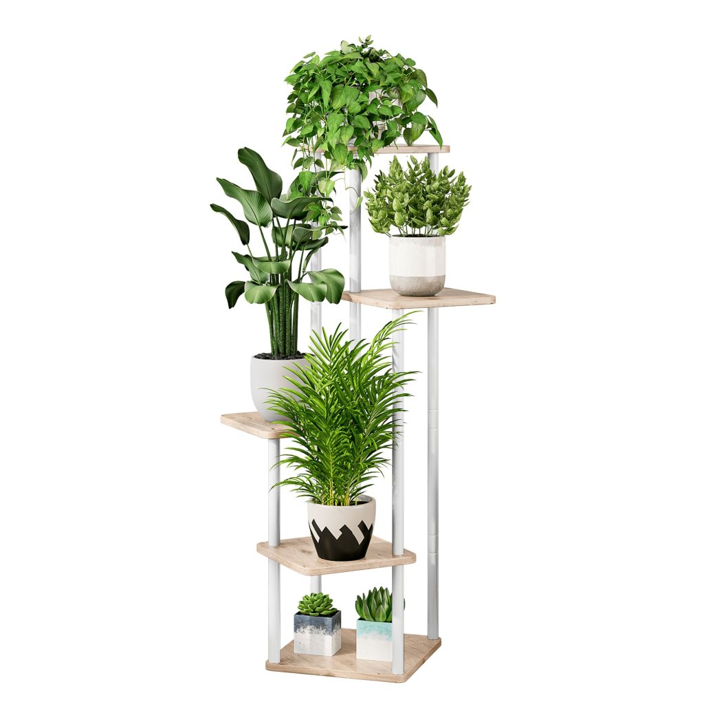 Vyrobený z kvalitného kovu a drevotriesky, stojan je robustný a odolný. S piatimi policami a nosnosťou na každú policu až 3 kg, poskytuje variabilitu na usporiadanie vašich rastlín podľa vlastného vkusu. Navyše jeho kompaktné rozmery zaručujú, že sa zmestí aj do menších priestorov.