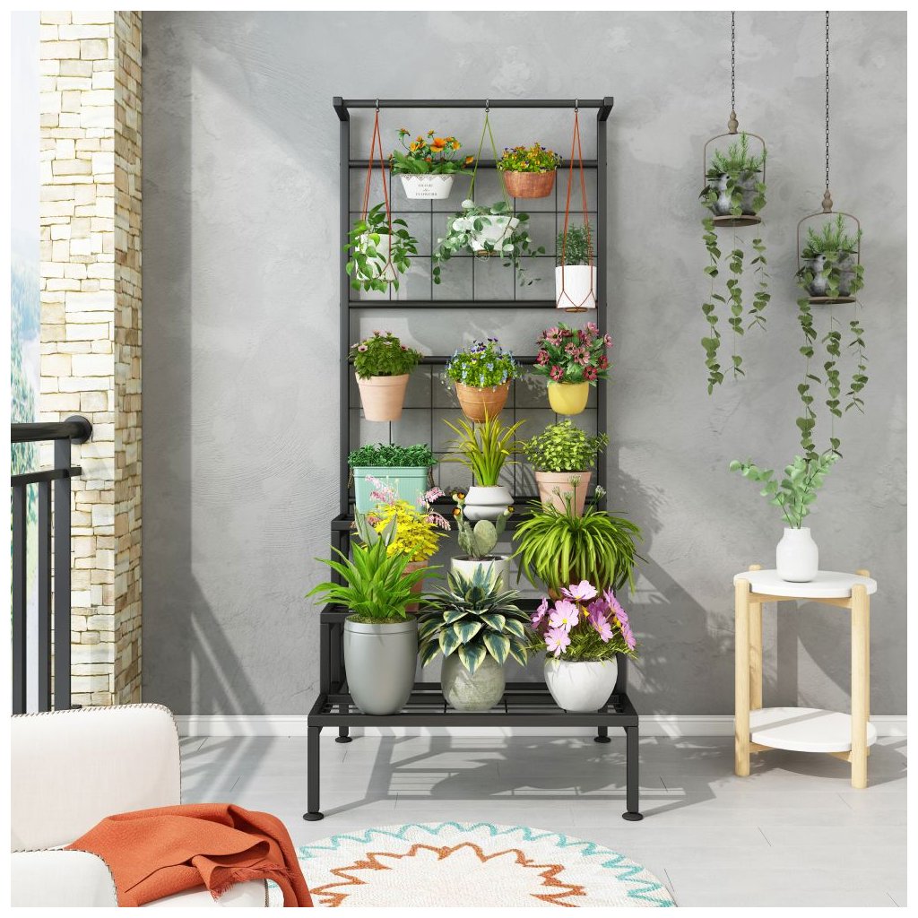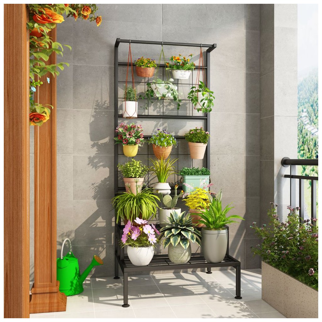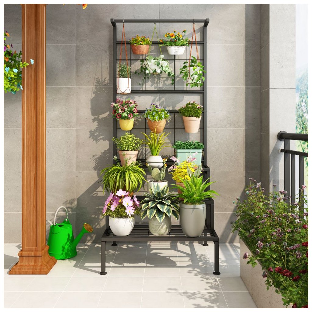 Stojan na kvety BALKO v čiernej farbe je praktický kovový doplnok do vašej záhrady či na balkón. S tromi policami a tyčou na zavesenie ponúka dostatok priestoru pre vaše kvety. Rozmery: 60x54x158 cm.