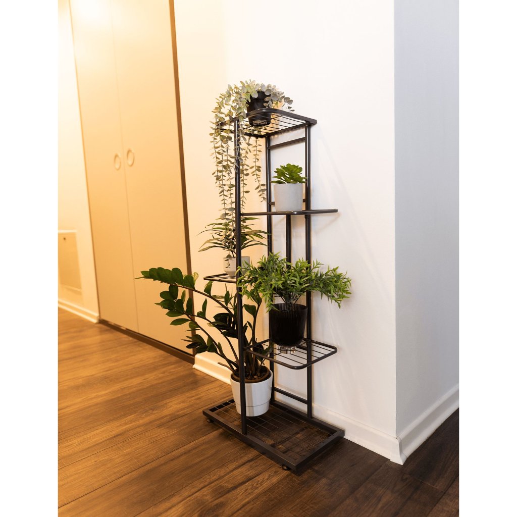 Stojan je vyrobený z kvalitného kovu, čo zaručuje jeho stabilitu a dlhú životnosť. S výškou 98 cm a piatimi policami poskytuje dostatok priestoru na umiestnenie rastlín a dekoratívnych predmetov. Nezáleží na tom, či máte malé bylinky alebo väčšie kvety, BAMIR splní všetky vaše očakávania.