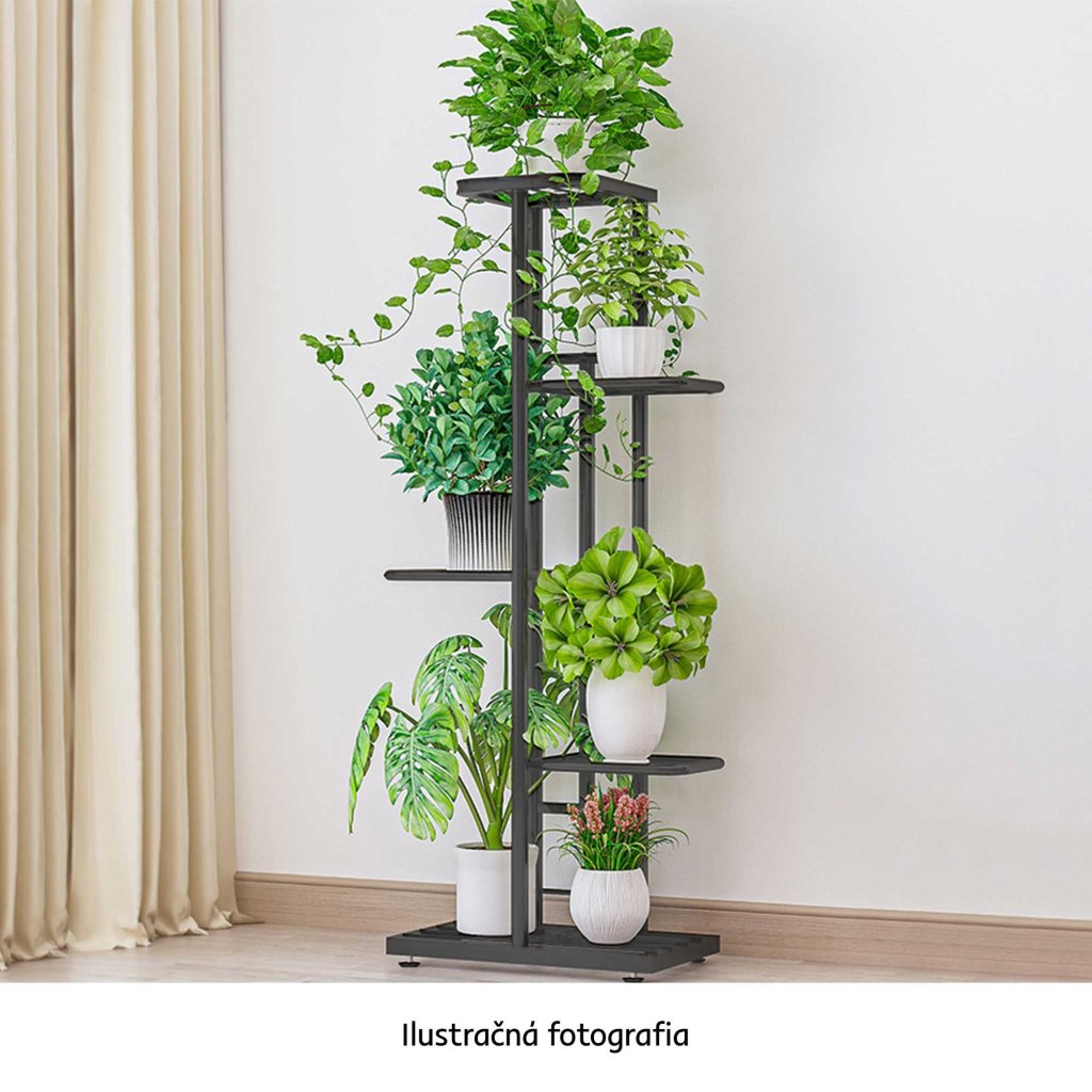 Stojan na kvety BAMIR v tmavosivej farbe je moderný kovový doplnok s piatimi policami. Rozmery 43x22x98 cm s nosnosťou 2 kg na policu. Ideálny na črepníkové rastliny. Dodávané v demonte.