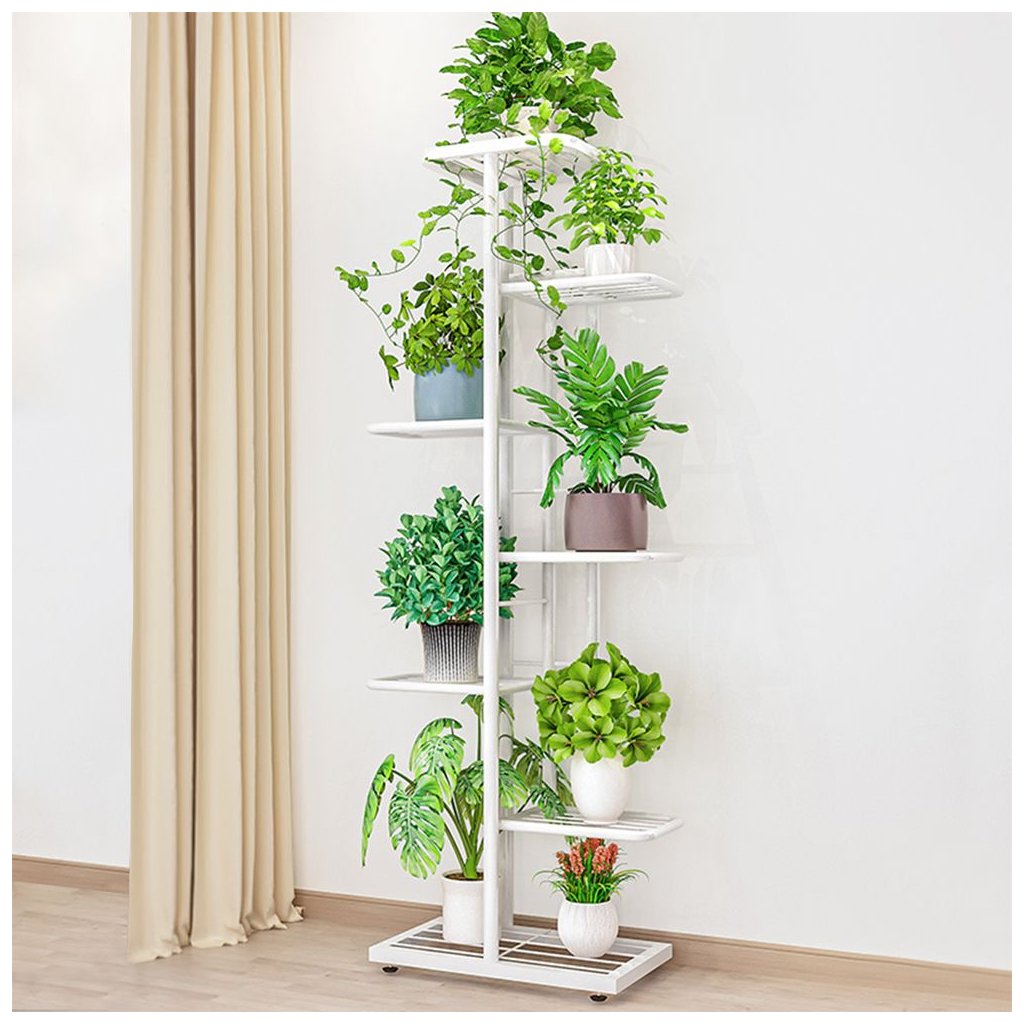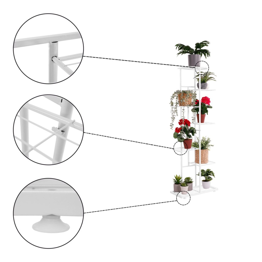 Stojan ponúka sedem políc na usporiadanie rastlín rôznych veľkostí, pričom každá polica unesie nosnosť 2 kg. Jeho kovová konštrukcia zabezpečuje odolnosť a stabilitu, zatiaľ čo moderný dizajn zapadne do akéhokoľvek prostredia.