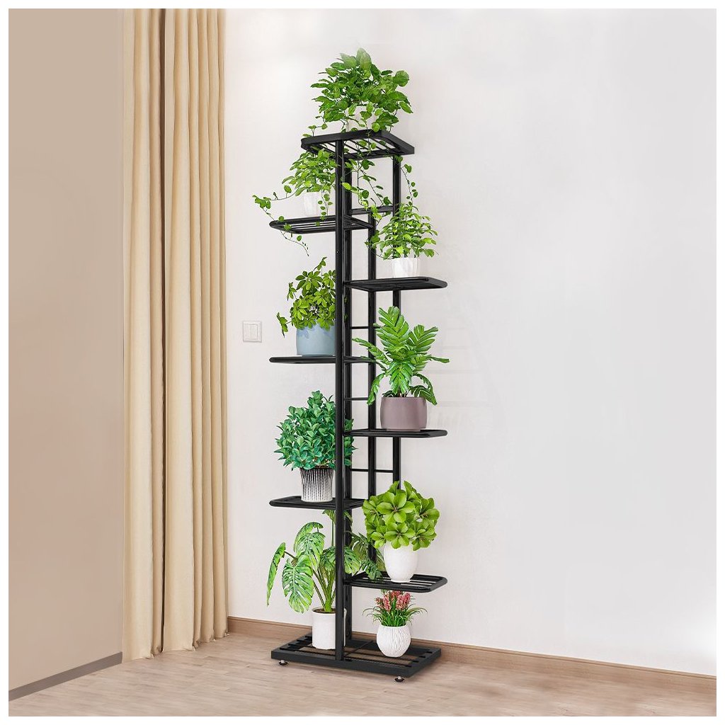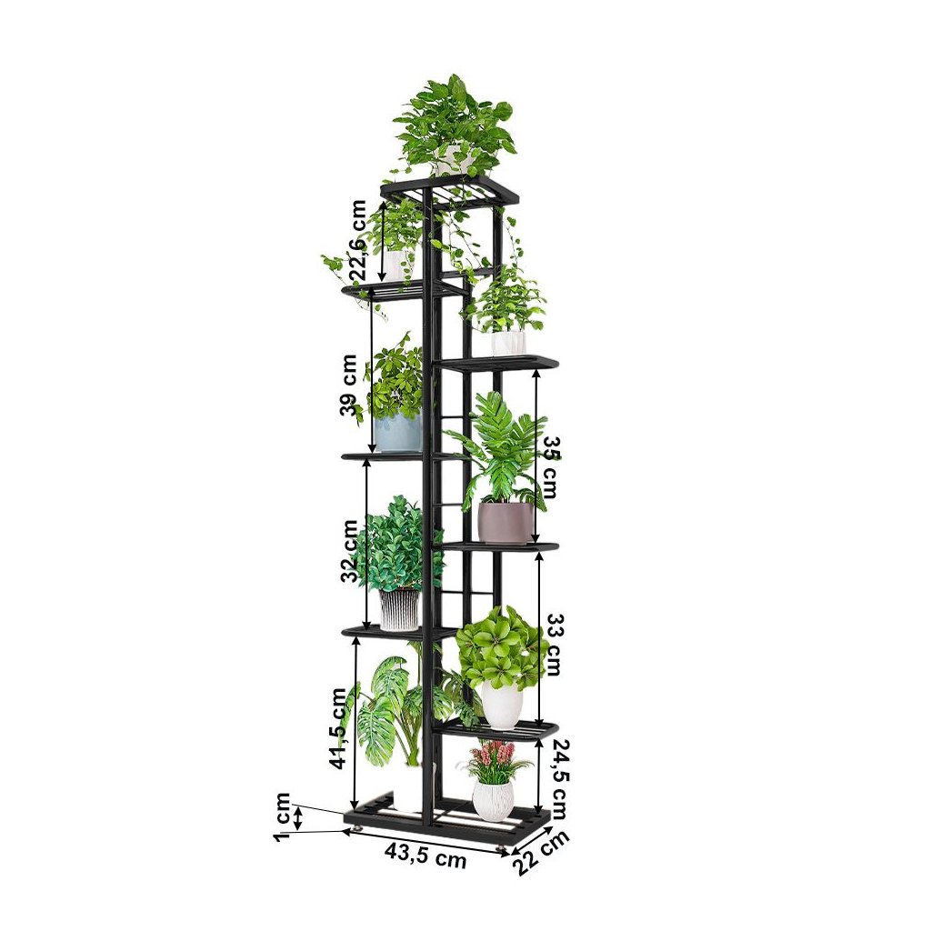 Stojan je vyrobený z kvalitného kovu, čo zabezpečuje jeho dlhú životnosť a stabilitu. S ôsmimi policami ponúka dostatok priestoru pre rôzne rastliny, pričom jeho elegantný dizajn sa hodí do akéhokoľvek moderného interiéru.