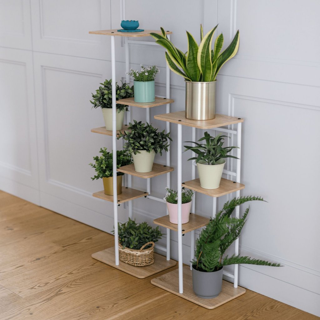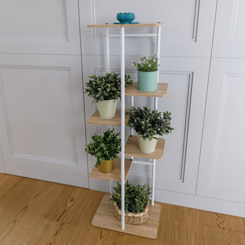 Vyrobený z kvalitných materiálov, tento viacúčelový stojan sa skvele hodí na črepníkové rastliny a iné dekorácie. Praktické usporiadanie políc poskytuje dostatok miesta pre vaše obľúbené kvety a rastliny, pričom zaručuje ich bezpečné a stabilné umiestnenie.