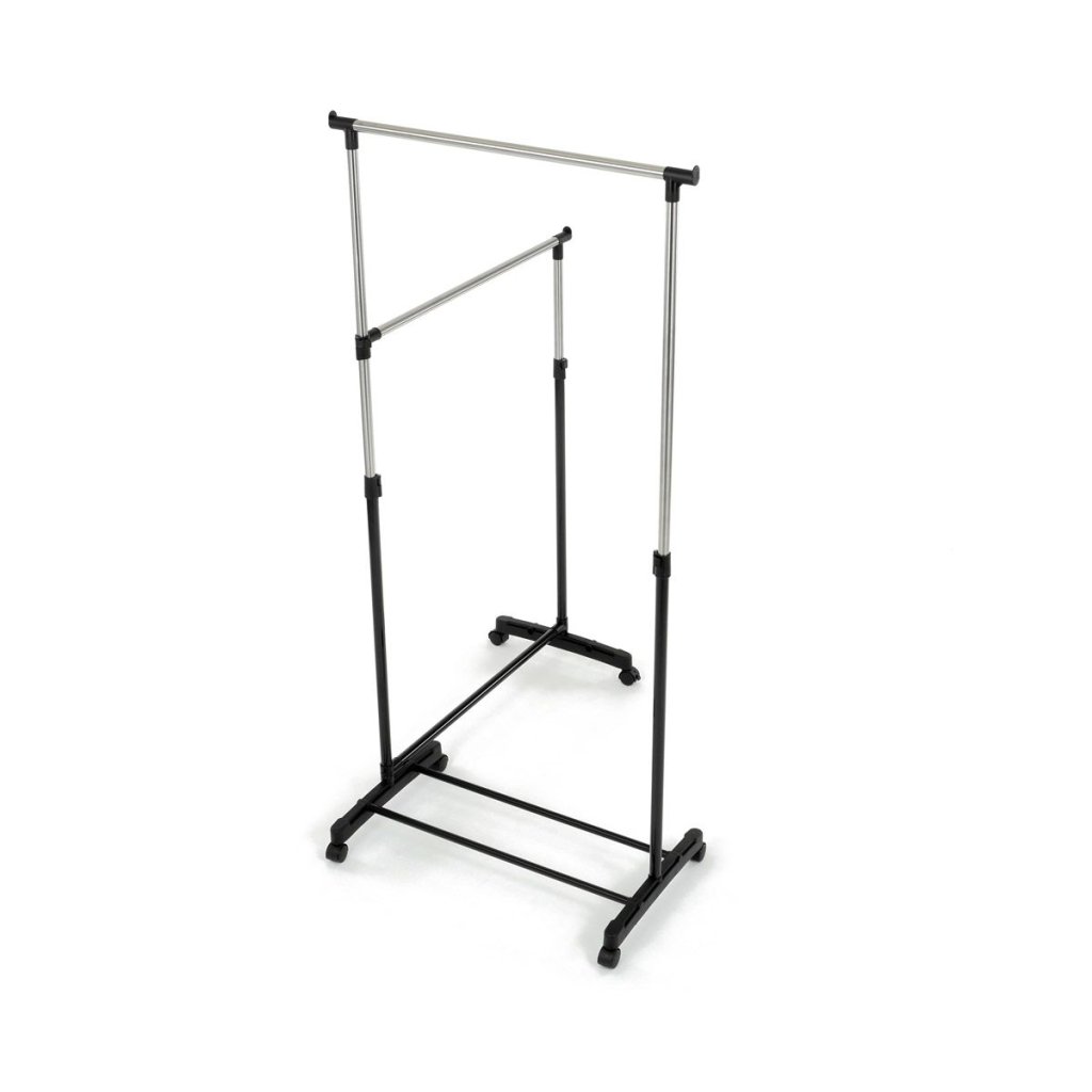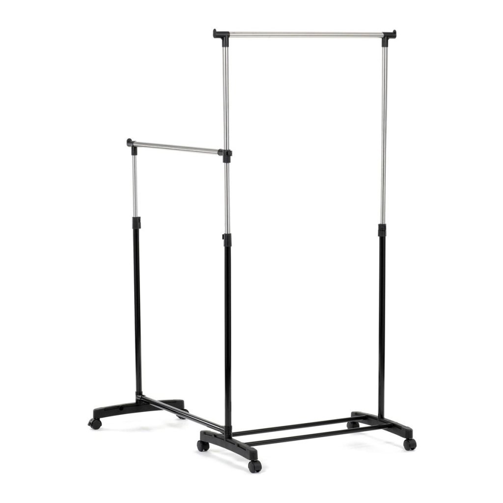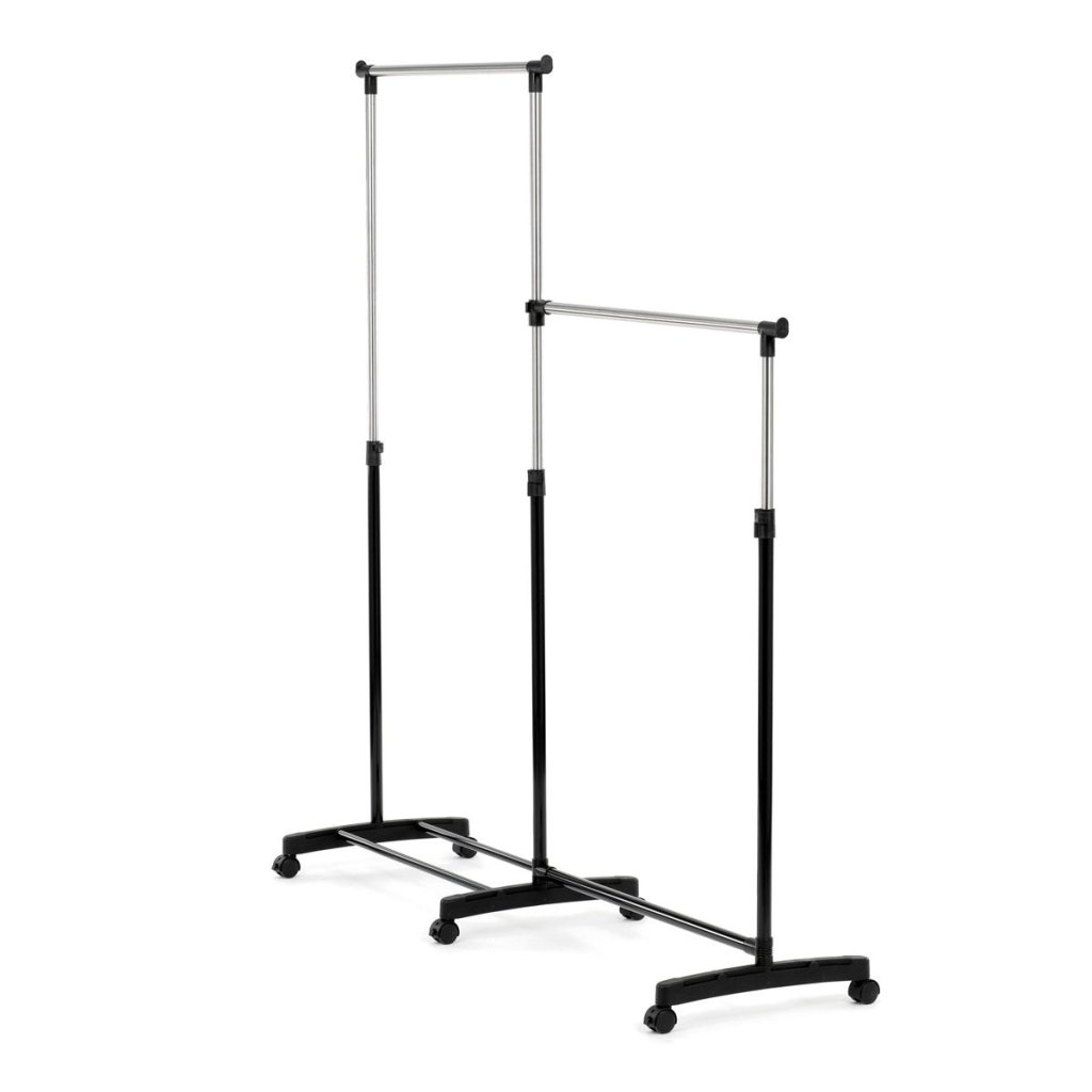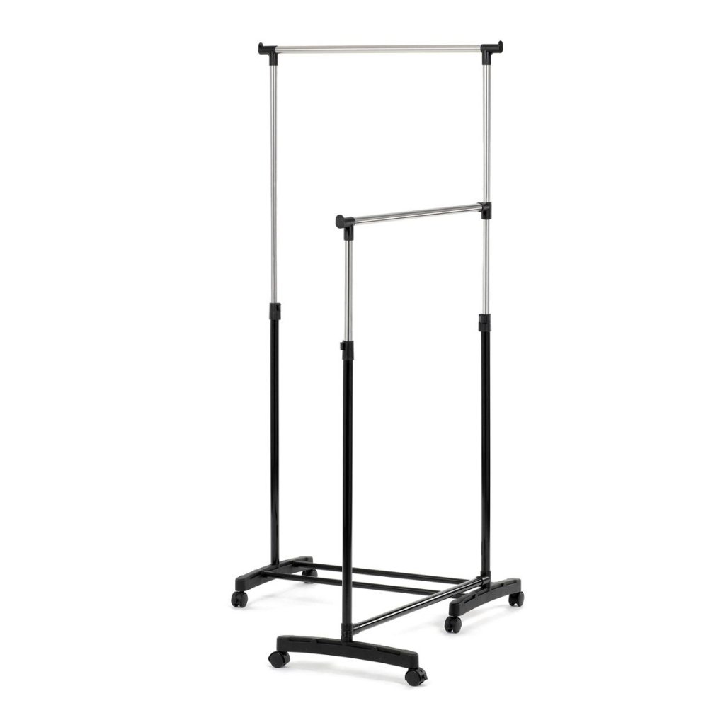 - Dve priestranné tyče poskytujú dostatočný priestor na zavesenie oblečenia.