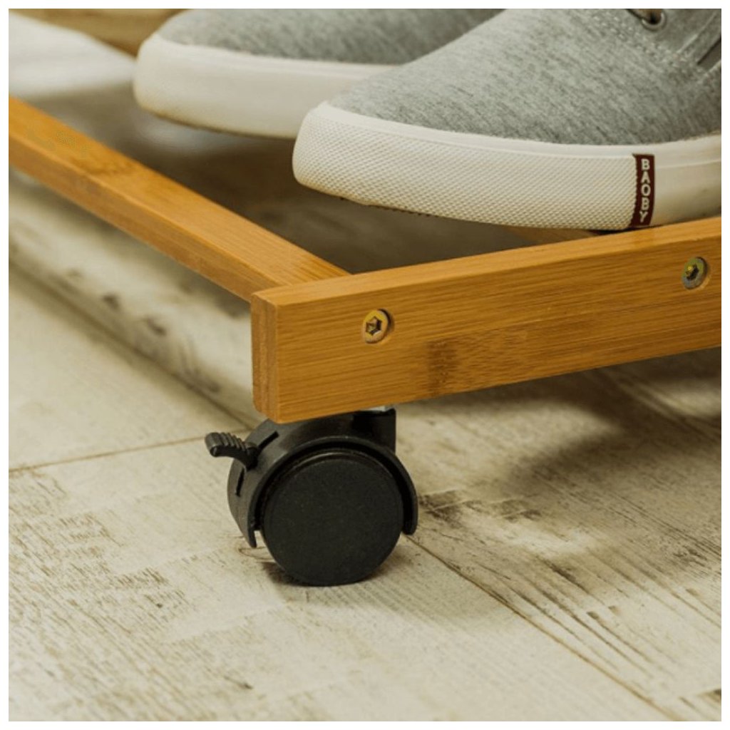 Vyrobený z kvalitného bambusového materiálu, stojan vyniká svojou pevnosťou a nosnosťou až 15 kg. Jeho mobilita je zabezpečená štyrmi kolieskami, čo uľahčuje presúvanie, a praktické háčiky vám poskytnú dodatočný priestor na zavesenie rôznych doplnkov.