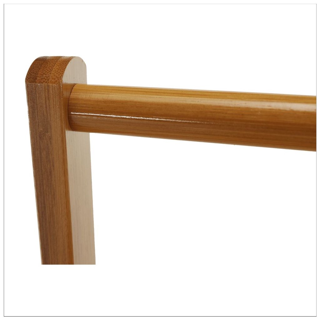 Stojan je vyrobený z kvalitného bambusu, čo zabezpečuje jeho odolnosť a ekologický aspekt. Vďaka šikovnej konštrukcii sa stane praktickým doplnkom každej izby, ktorý oceníte pri organizovaní svojich vecí.