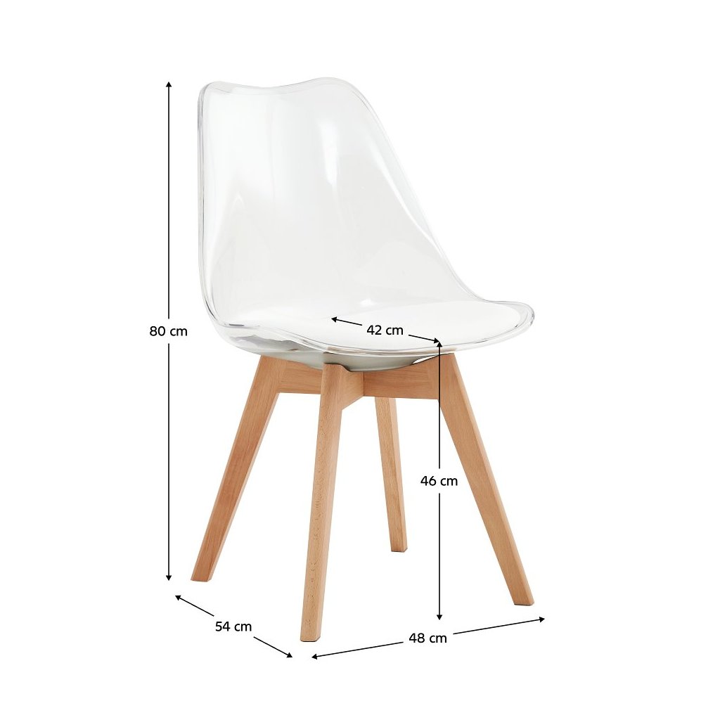 Elegantná jedálenská stolička BALI v transparentnom dizajne kombinuje akryl, ekokožu a bukové drevo. Extra mäkké sedenie a trendy vzhľad zaručujú maximálny komfort. Rozmery: 48x54x80 cm.