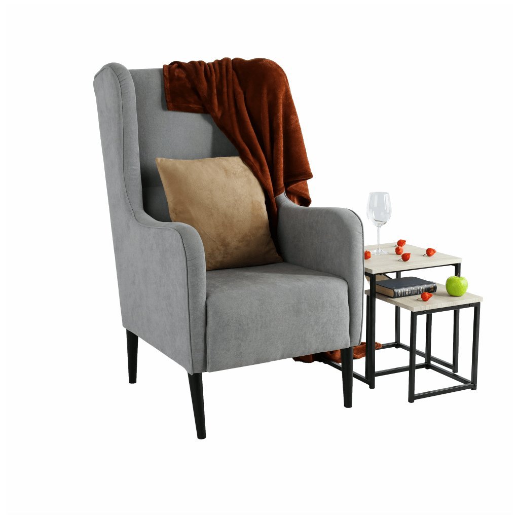 Ušiakové kreslo BREDLY v elegantnej sivej látke je ideálnym doplnkom pre každý moderný interiér. S jeho nadčasovým dizajnom a pohodlným čalúnením sa stane obľúbeným miestom na relaxáciu vo vašej domácnosti.