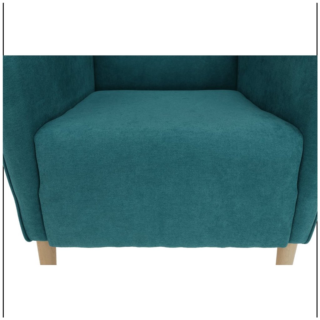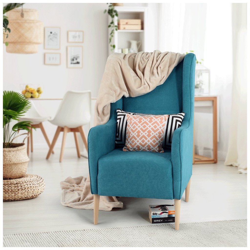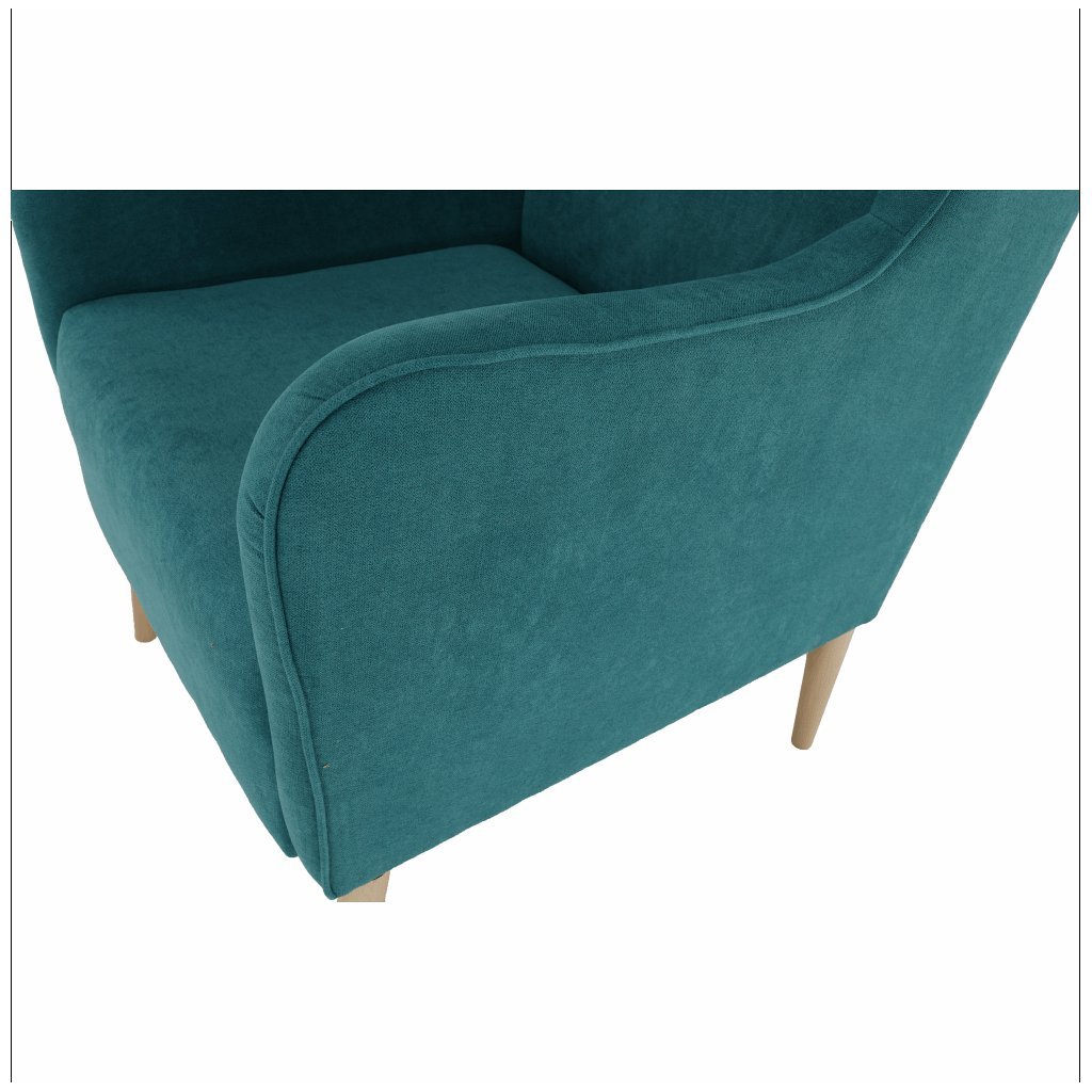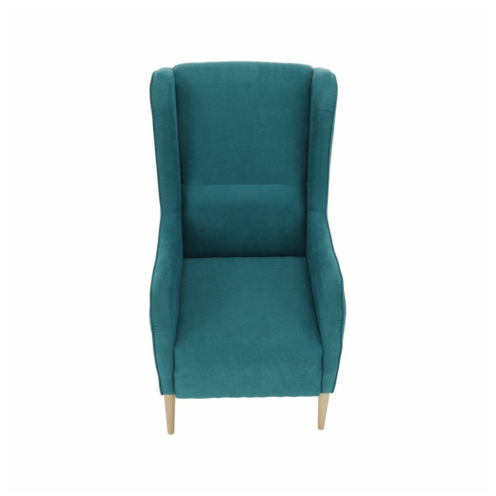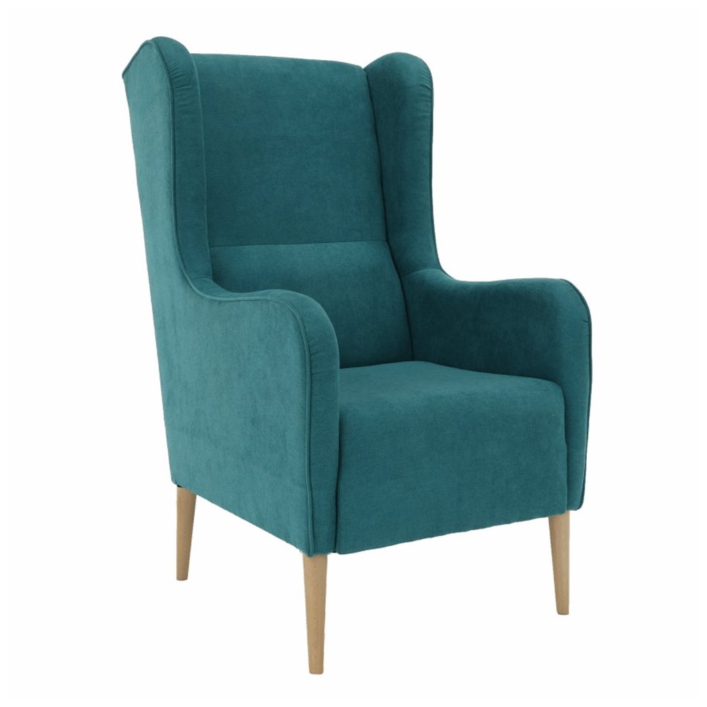 Čalúnenie z príjemnej látky Soro v atraktívnej tyrkysovej farbe je zárukou pohodlného sedenia, zatiaľ čo pevné drevené nohy vo farbe buk zabezpečujú stabilitu a odolnosť. S výškou 117 cm a nosnosťou až 120 kg je toto kreslo ideálne pre chvíle oddychu a relaxu.