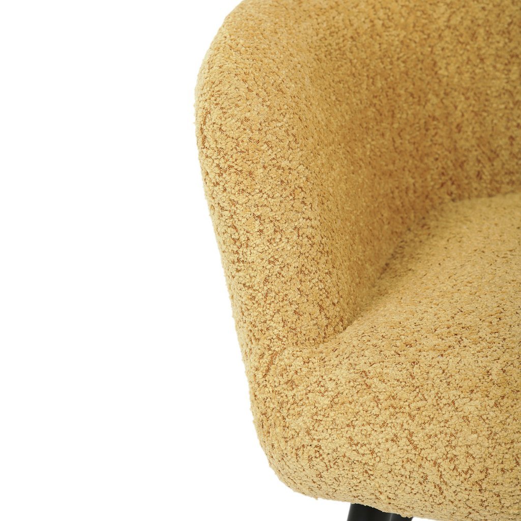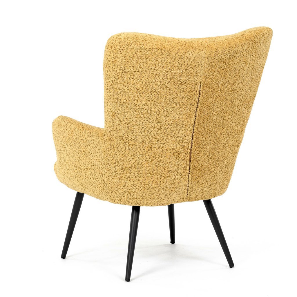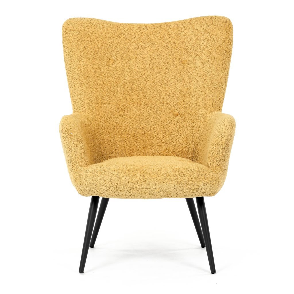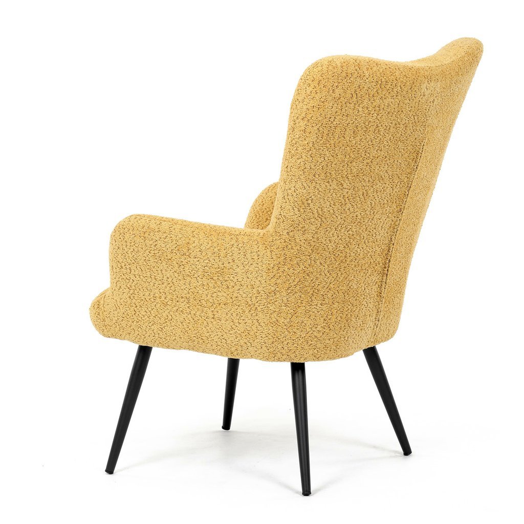 - Žltá látka Bouclé dodáva kreslu moderný a atraktívny vzhľad.