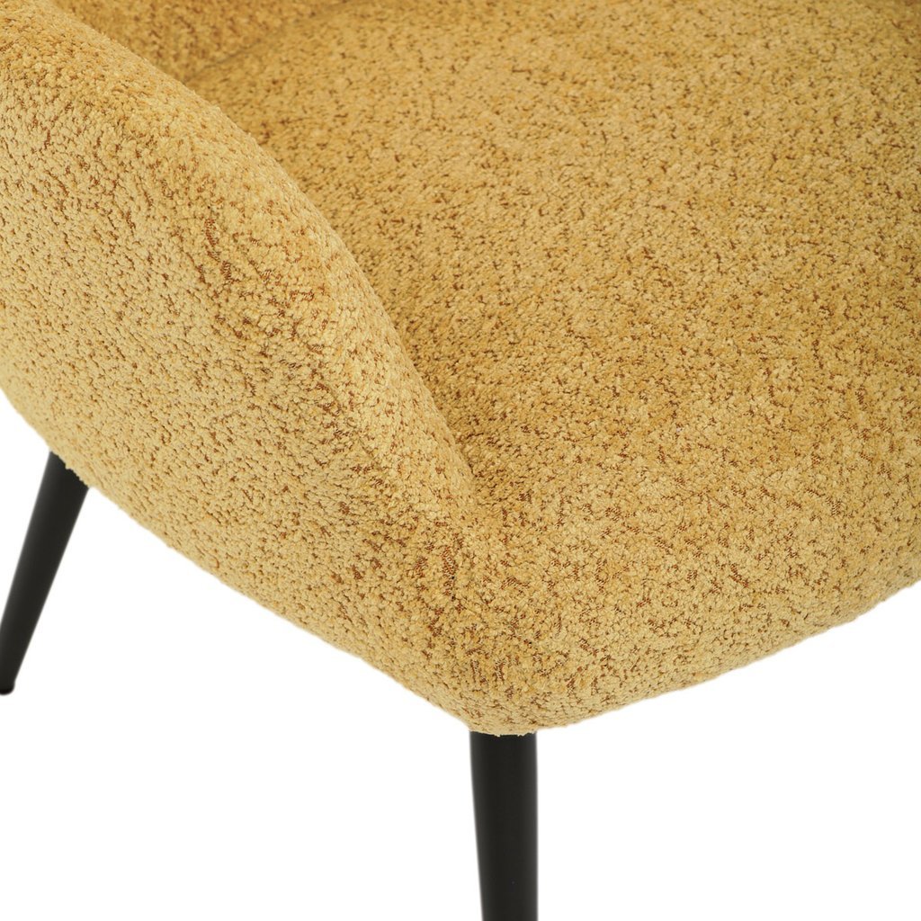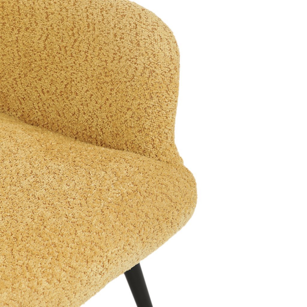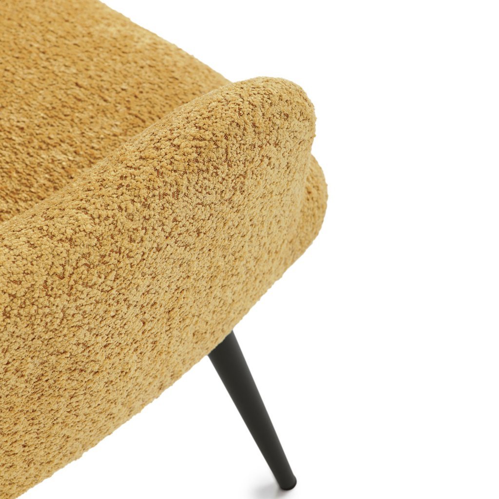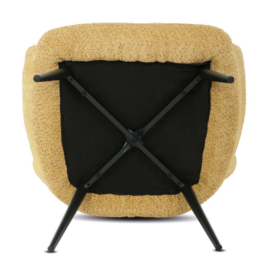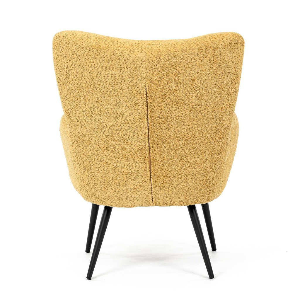 - Žltá látka Bouclé dodáva kreslu moderný a atraktívny vzhľad.