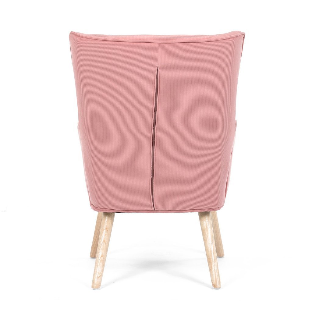 Ušiakové kreslo PINE v jemnej ružovej menčestrovej látke dodá vašej obývačke nádych elegancie a pohodlia. Spoľahnite sa na jeho masívne nohy a vychutnajte si dokonalý relax v štýlovom prevedení.