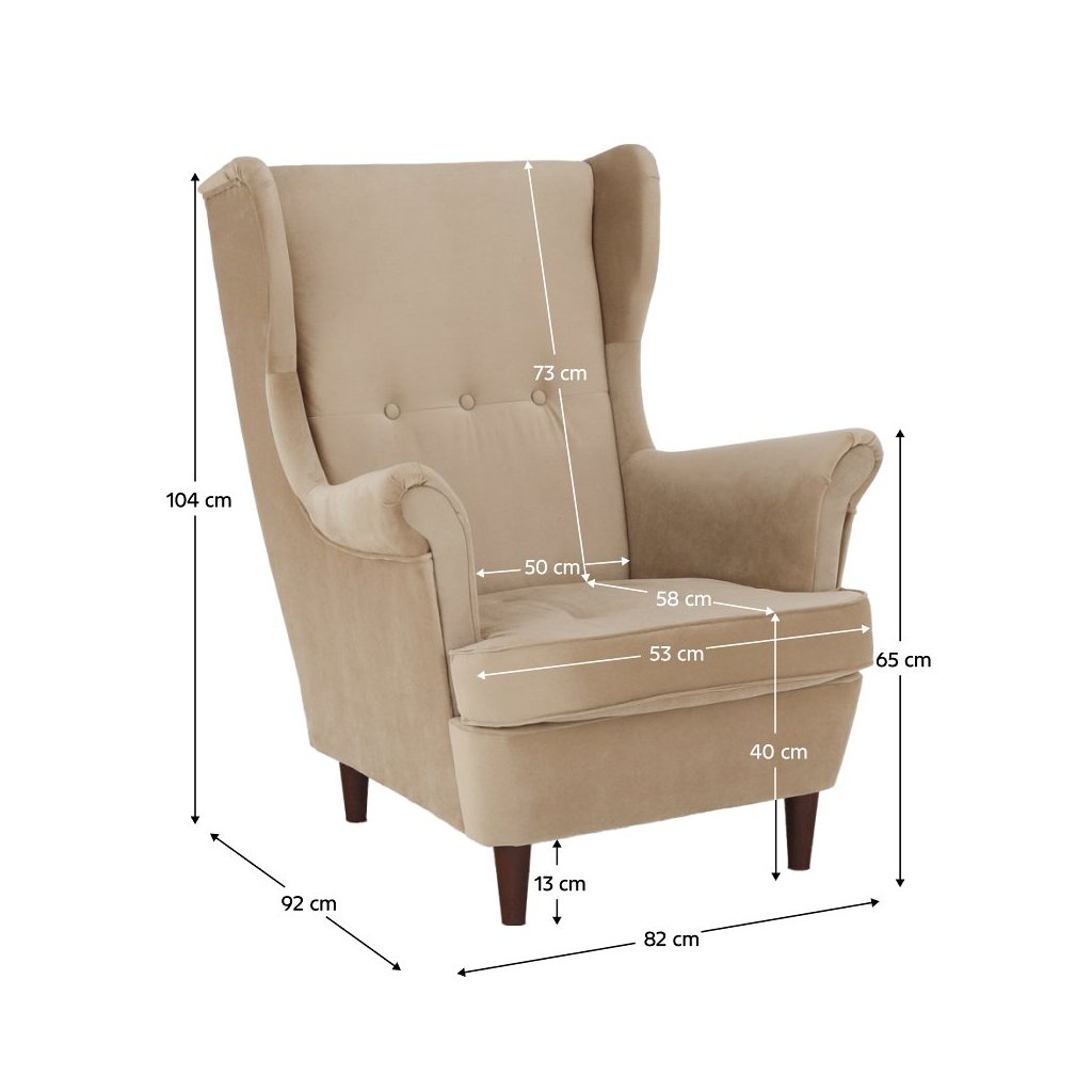 Ušiakové kreslo - RUFINO, Béžová látka pre vašu dokonalú pohodu.