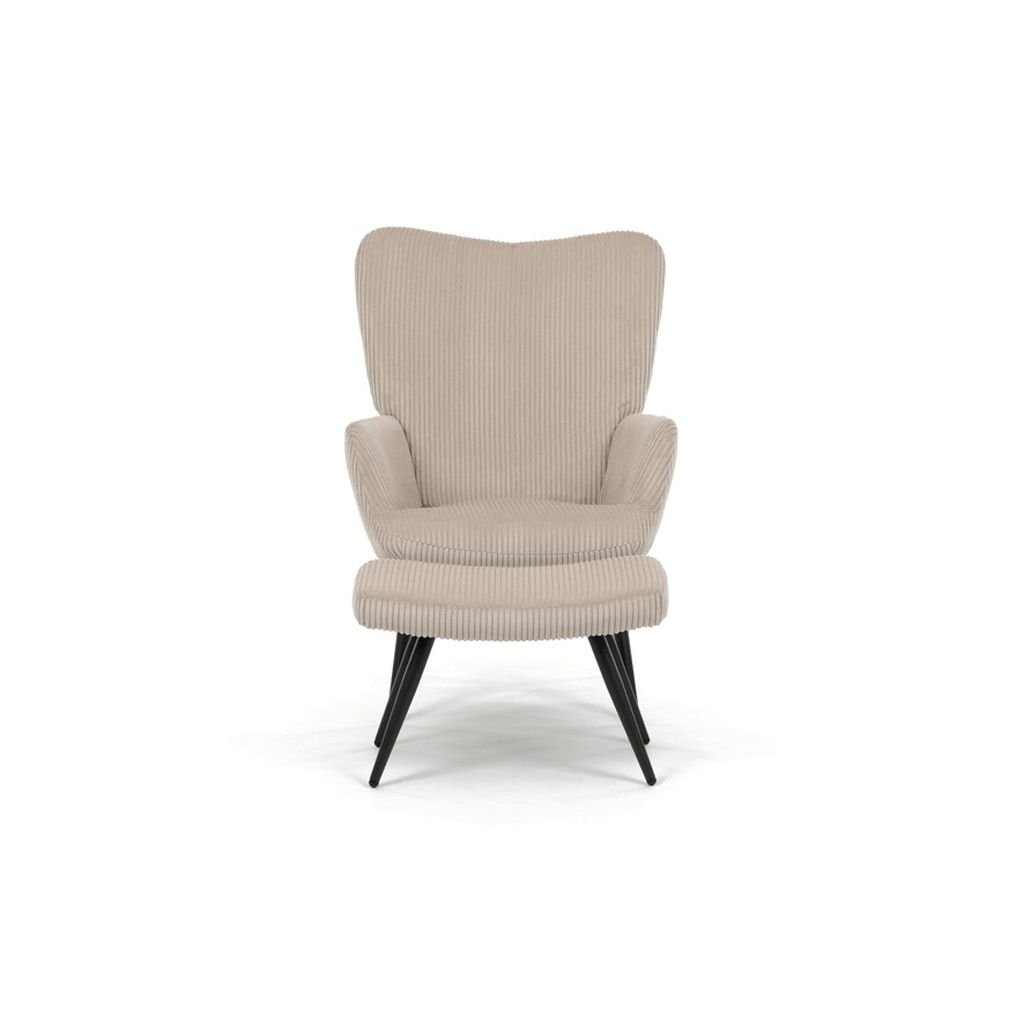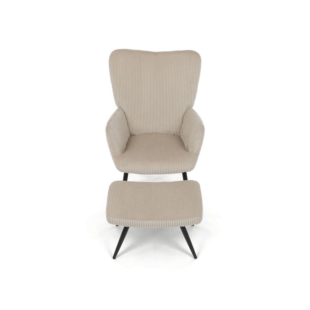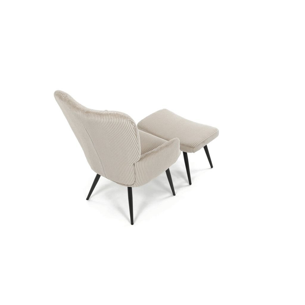 Ušiakové kreslo s podnožkou v béžovej látke je ideálnym riešením pre tých, ktorí hľadajú kombináciu pohodlia a štýlu. Jeho moderný dizajn a jemná textúra manšestrovej látky prinesú do vášho interiéru útulnosť a eleganciu. S dostatočnou oporou a praktickým taburetom sa stane vaším obľúbeným miestom na oddych.