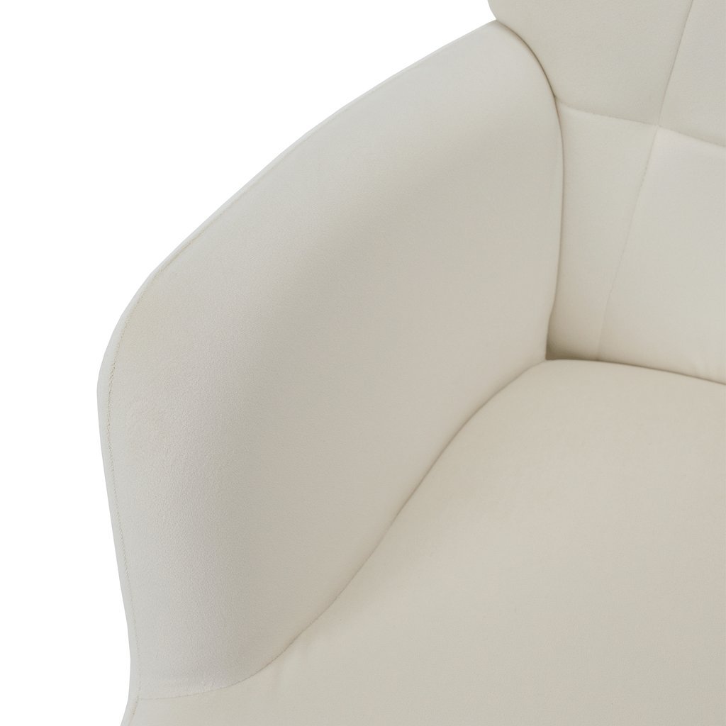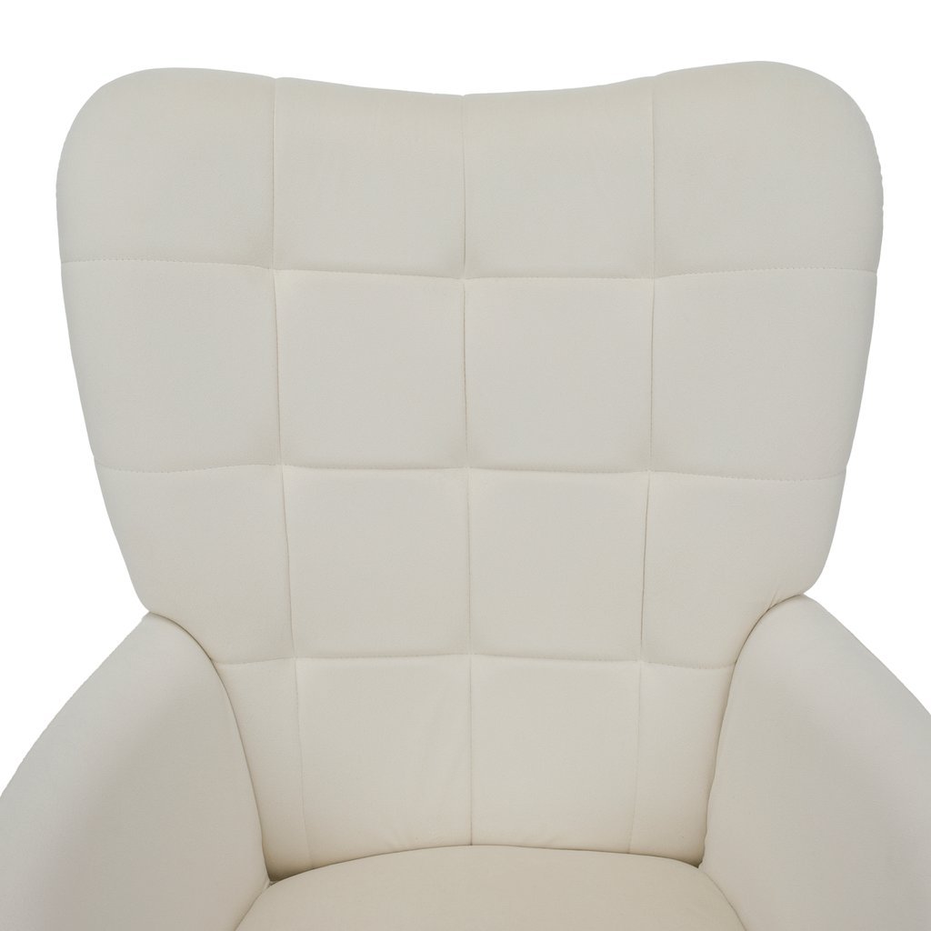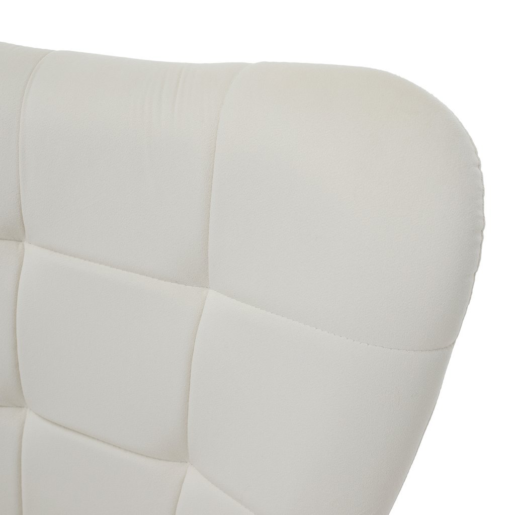 Čalúnené v bielej zamatovej látke, toto kreslo nielenže vyzerá skvele, ale je aj veľmi príjemné na dotyk. Praktická podnožka poskytuje ideálnu podporu pre unavené nohy a umožní vám vychutnať si zaslúžený oddych po náročnom dni.
